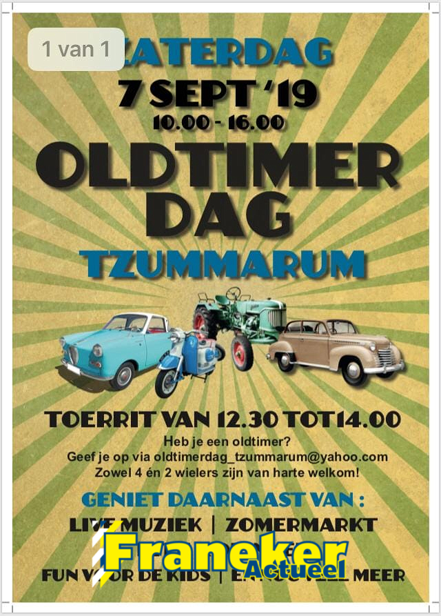 De eerste Oldtimerdag in Tzummarum is een feit, vandaag, Zaterdag 7 september 2019 was het vanaf 10:00 uur in het centrum van Tzummarum zover.