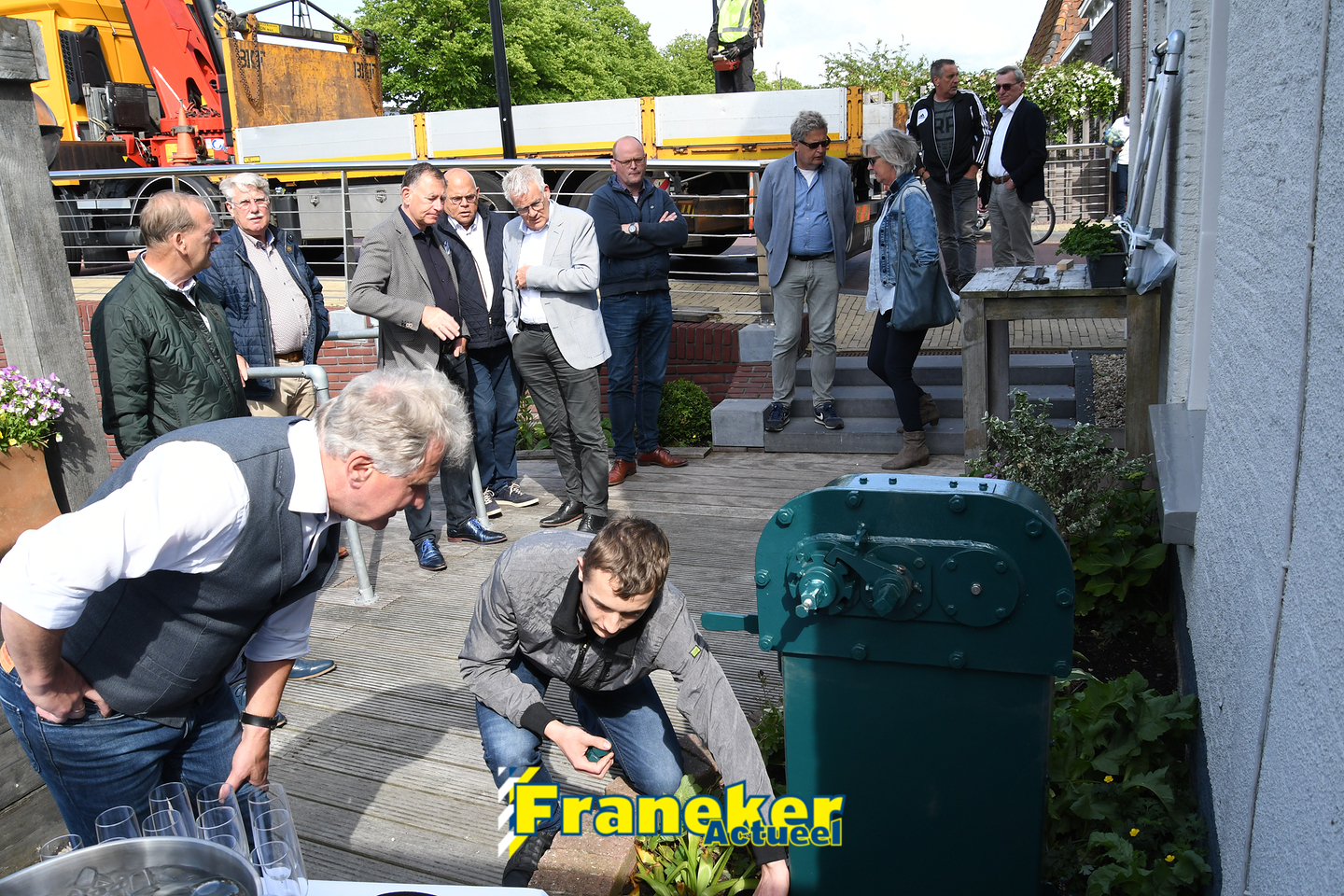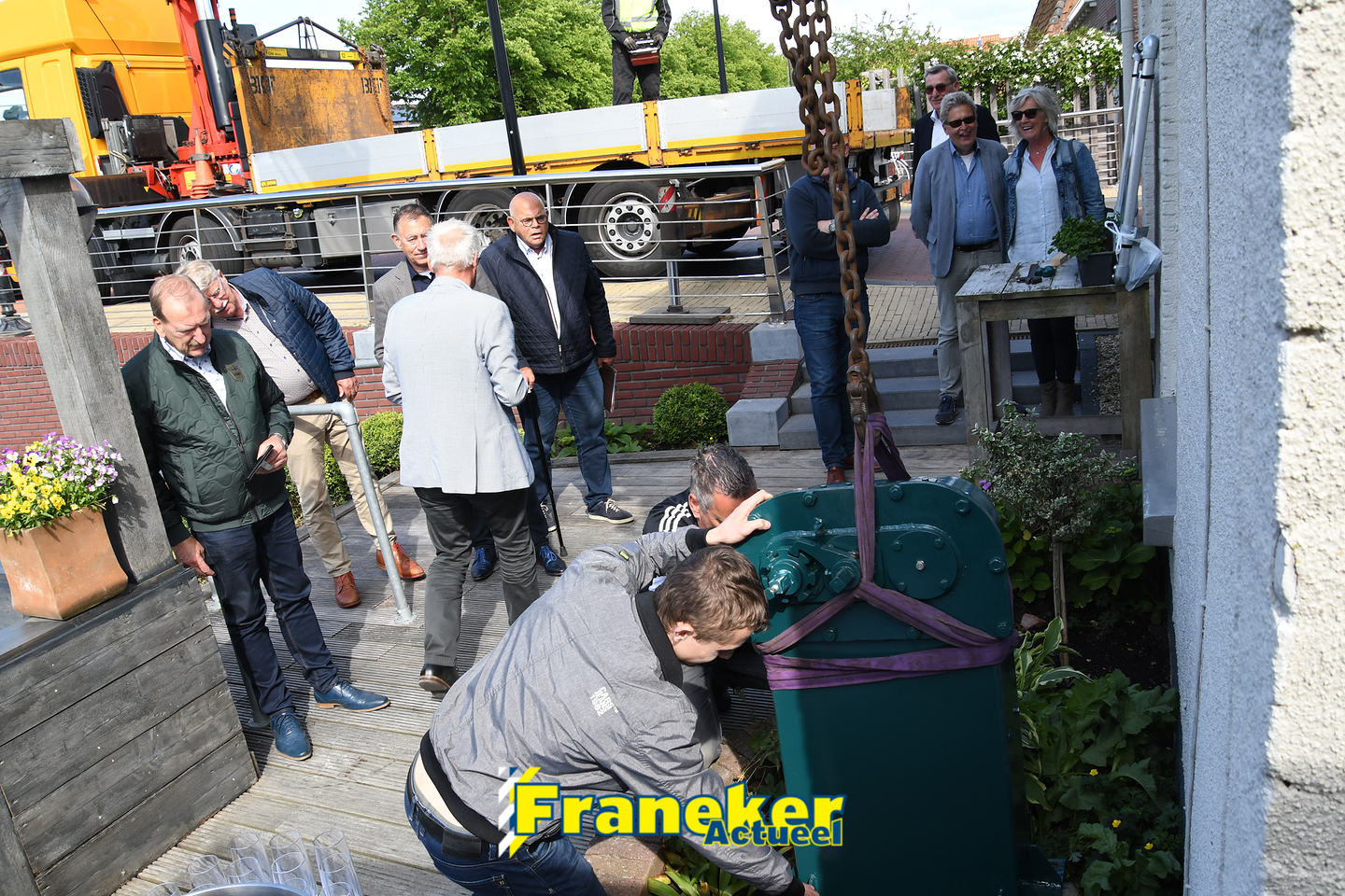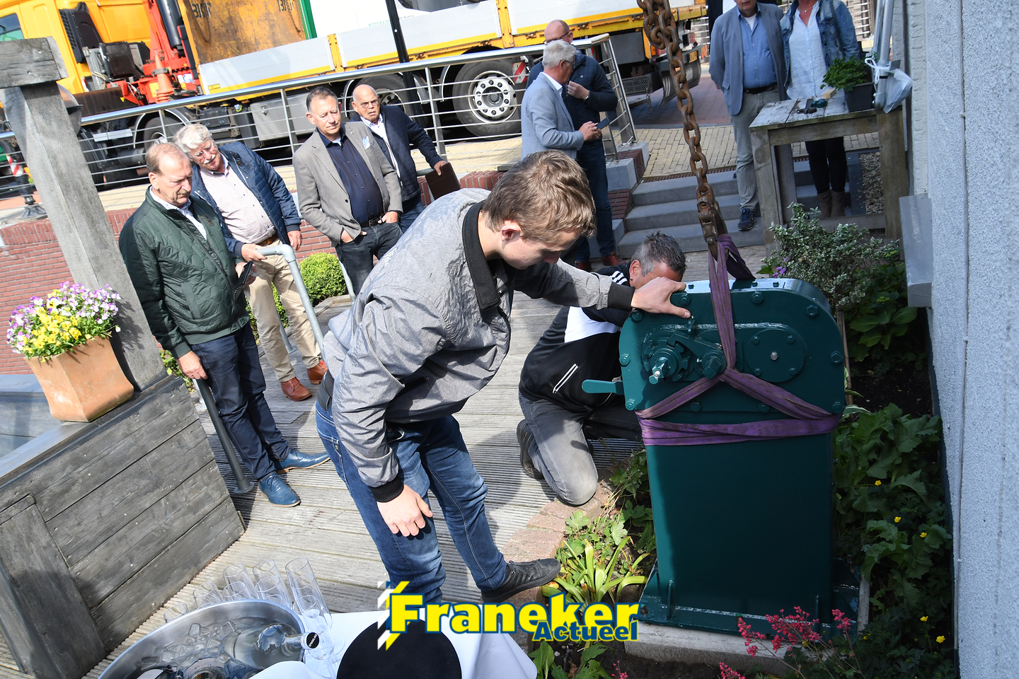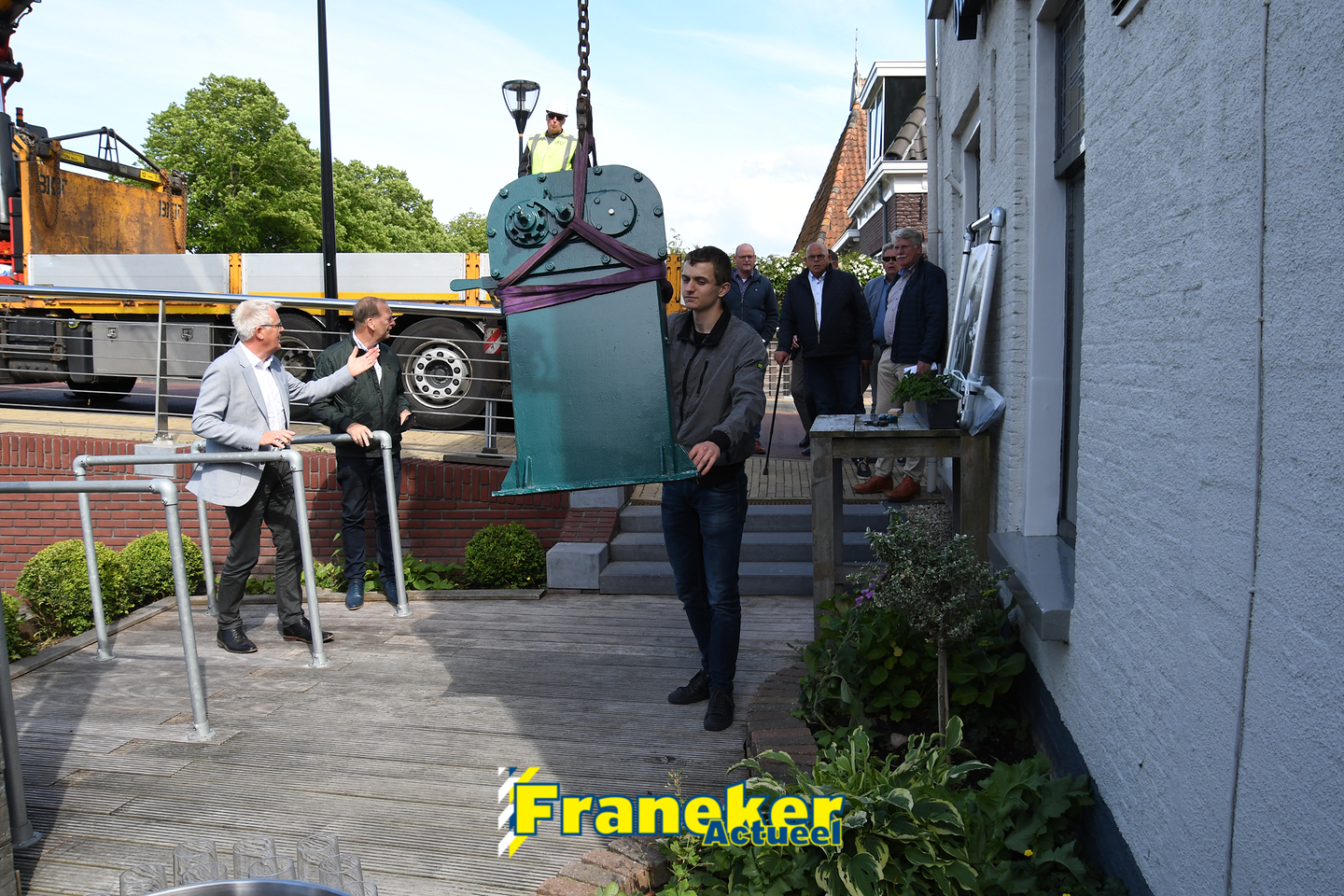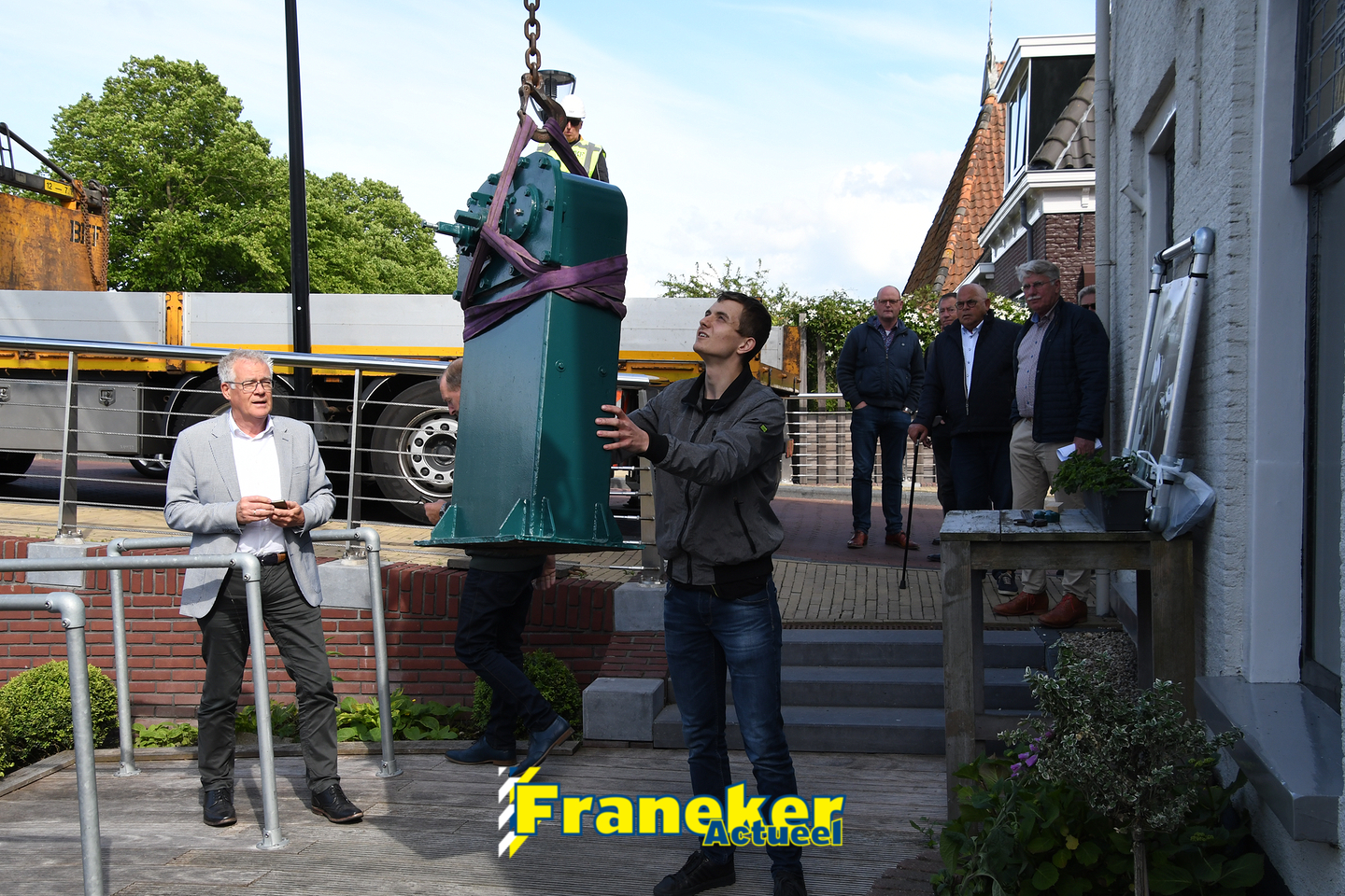 Bouwbedrijf Haarsma in Franeker zorgde voor de fundering van het mechaniek op zijn nieuwe bestemming en ook Bedrijvencentrum Franeker sponsorde het project. Van der Velde: ,,Yorick en ik zijn supertrots op het eindresultaat. Samen hebben we ervoor gezorgd dat een prachtig stukje historie van de Franeker binnenstad behouden blijft. Hoe mooi is dat?”