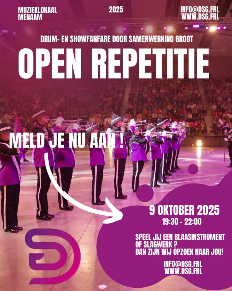 Drum- en Showfanfare DSG organiseert op donderdagavond 9 oktober een open repetitie. Iedereen die een
