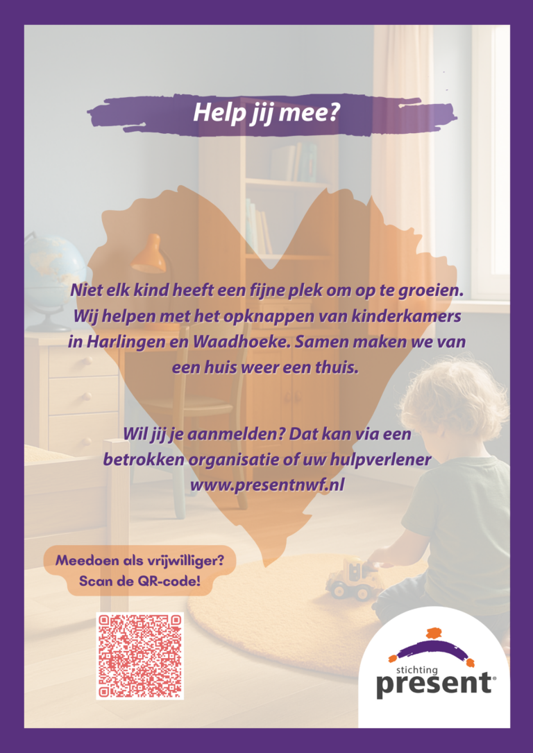 Een eigen slaapkamer lijkt vanzelfsprekend, maar dat is het voor sommige kinderen in Harlingen en Waadhoeke niet. Zij slapen soms op een matras op de grond of missen een rustige plek om huiswerk te maken. Met de jubileumactie 10 voor 10 wil Stichting Present Noordwest Friesland deze kinderen een mooie, eigen en veilige plek bieden.