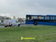Tijdens de manoeuvre raakte de bus vast. Gelukkig zijn de inzittenden inmiddels veilig uit de bus gehaald, is er niemand gewond geraakt. De politie adviseert weggebruikers de omgeving te vermijden en rekening te houden met vertragingen in het verkeer.