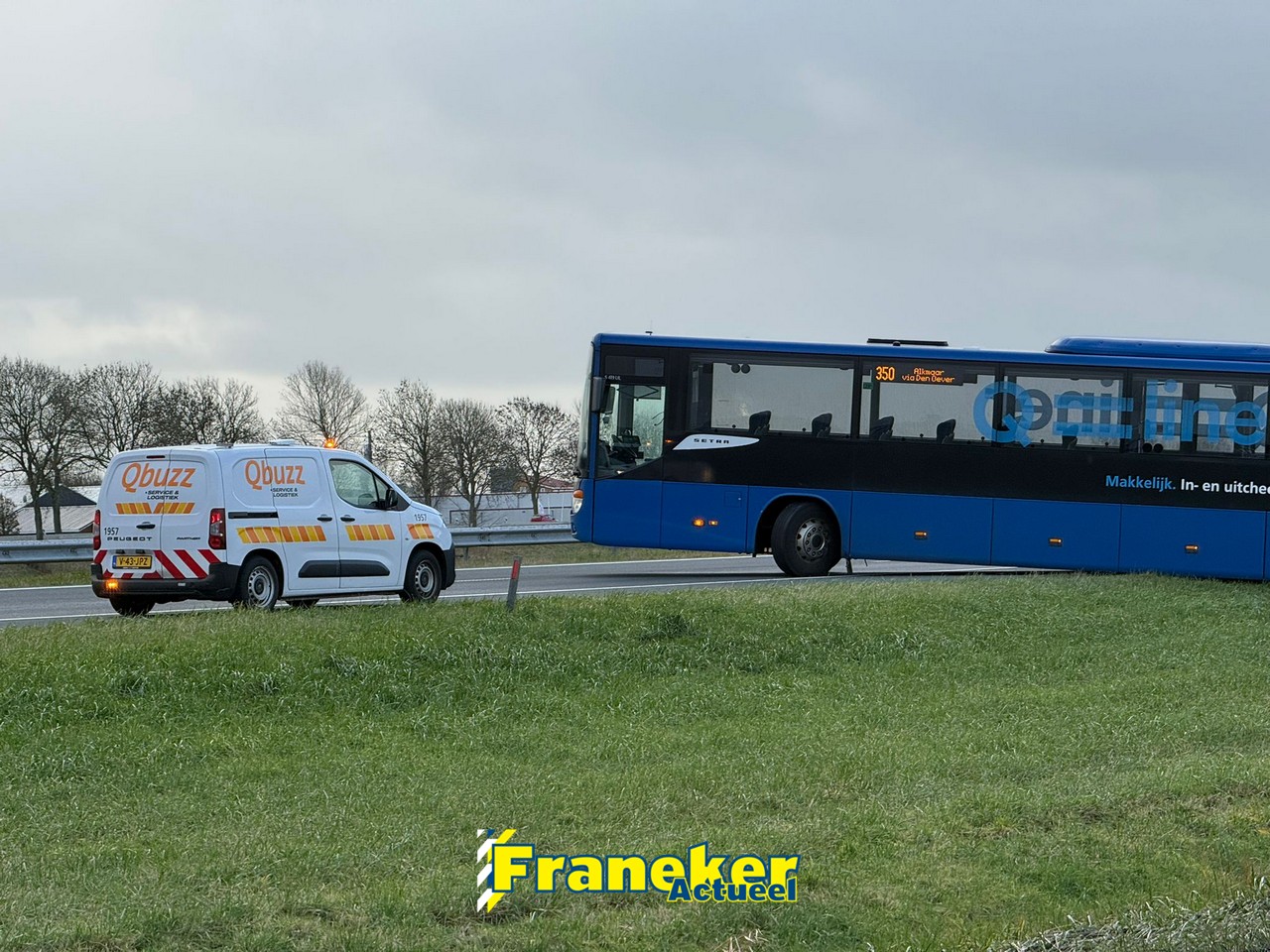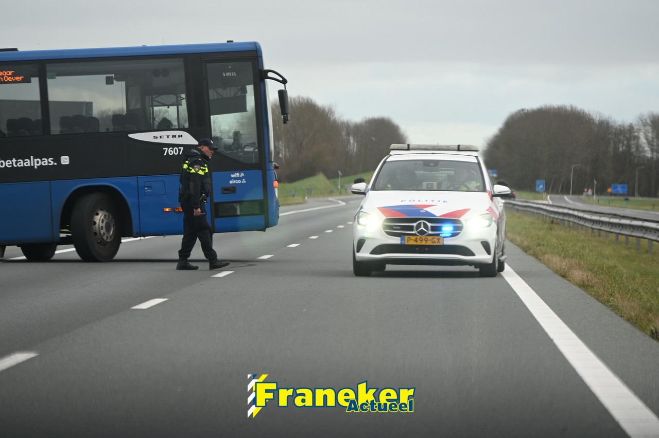 Vanmiddag rond 13:00 uur heeft een Qbuzz zich vastgereden op de A31. Het incident gebeurde nadat de politie het verkeer tijdelijk vroeg om te keren en tegen de richting in te rijden, richting de oprit Dronrijp, vanwege een eerder ongeval op dezelfde snelweg.