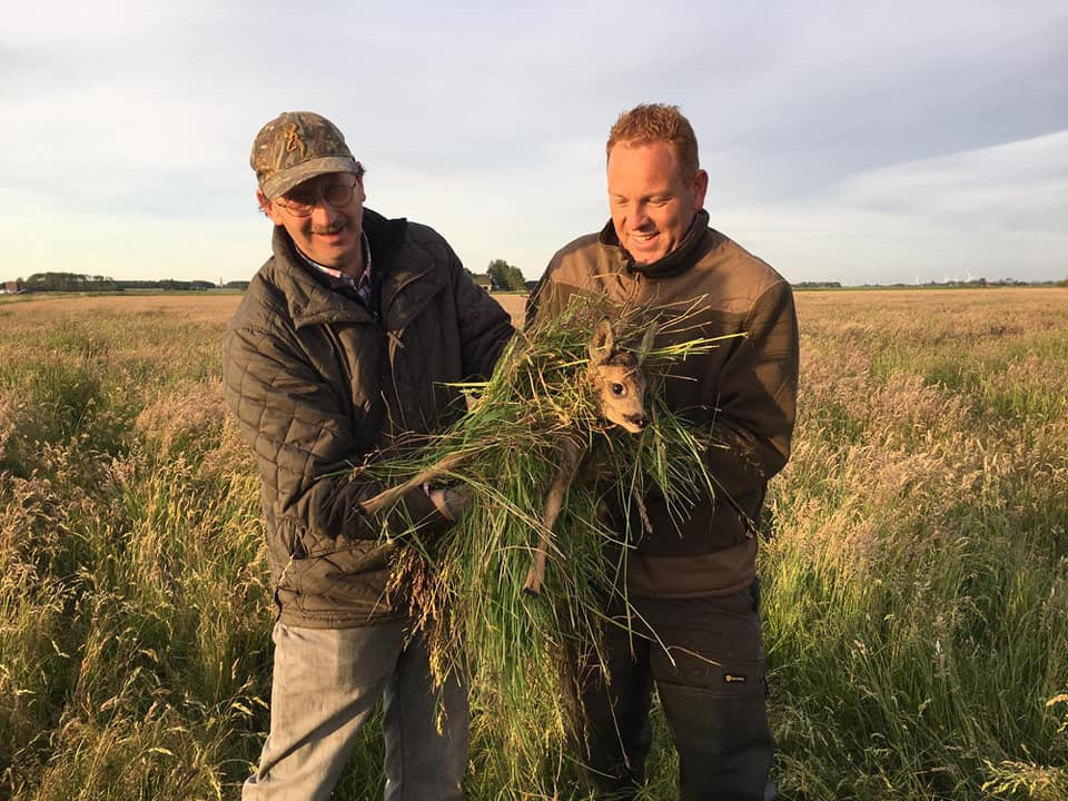 In het gebied werden 5 jonge reekalfjes gevonden en verplaatst naar een ander stuk land, de moeder reegeit volgt haar jong vanzelf naar de nieuwe plek. Om te voorkomen dat er menselijke geur aan de reekalfjes komen worden ze ingepakt in gras. Al met al een super mooi resultaat voor de mannen van het drone team.