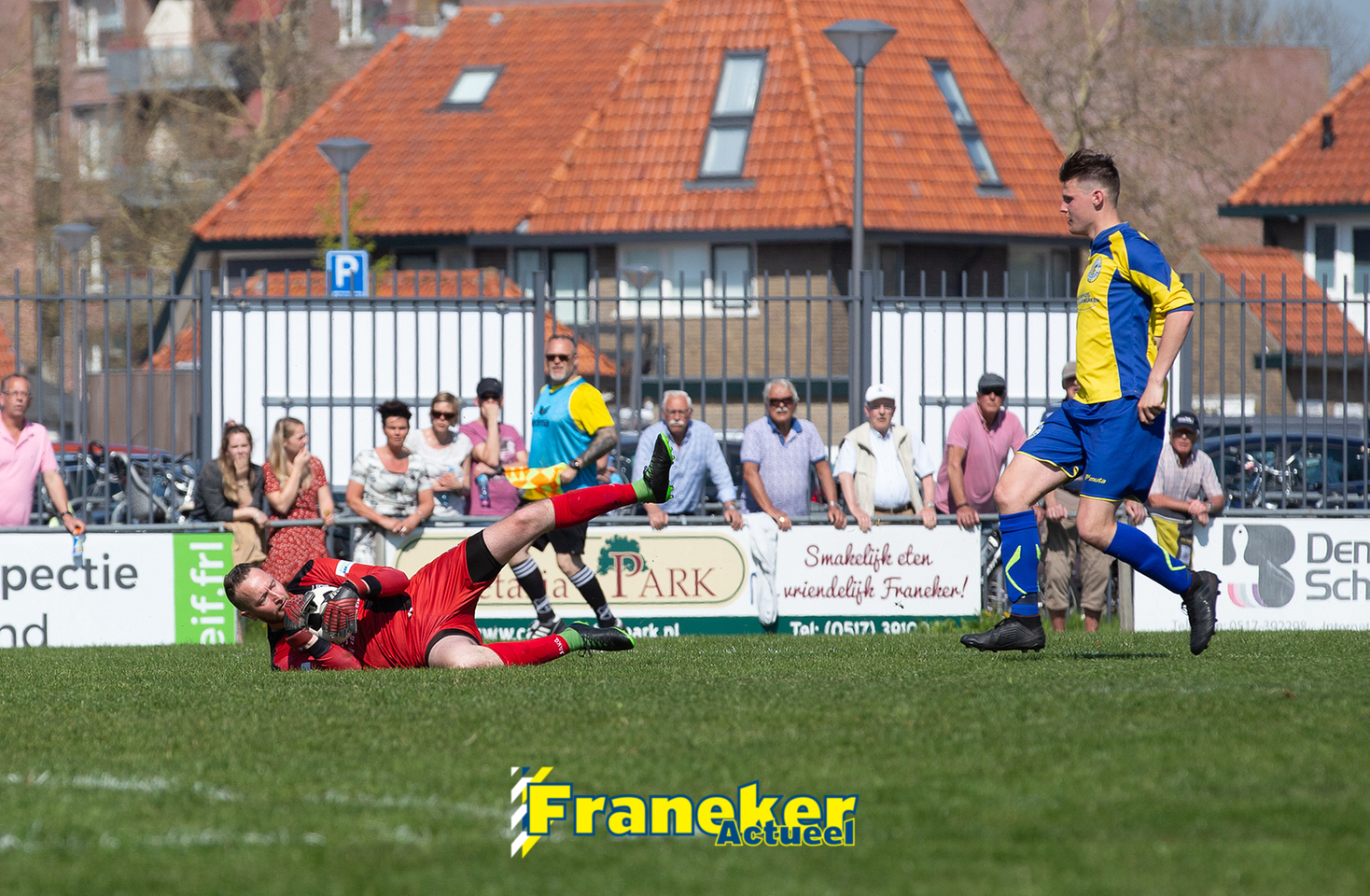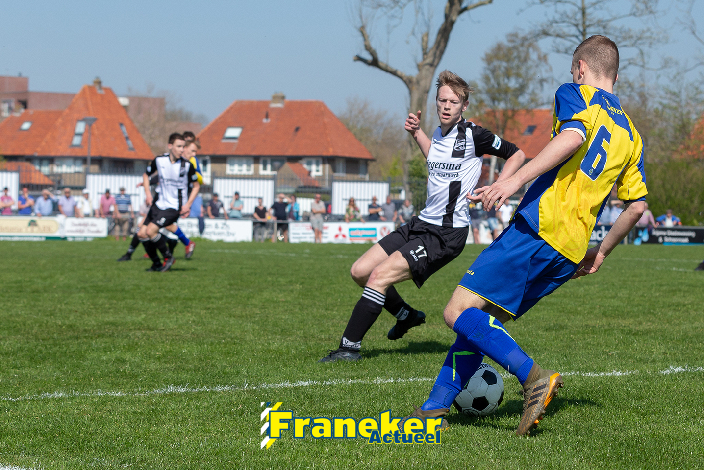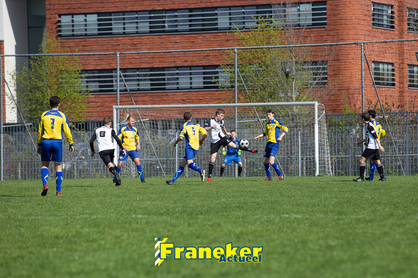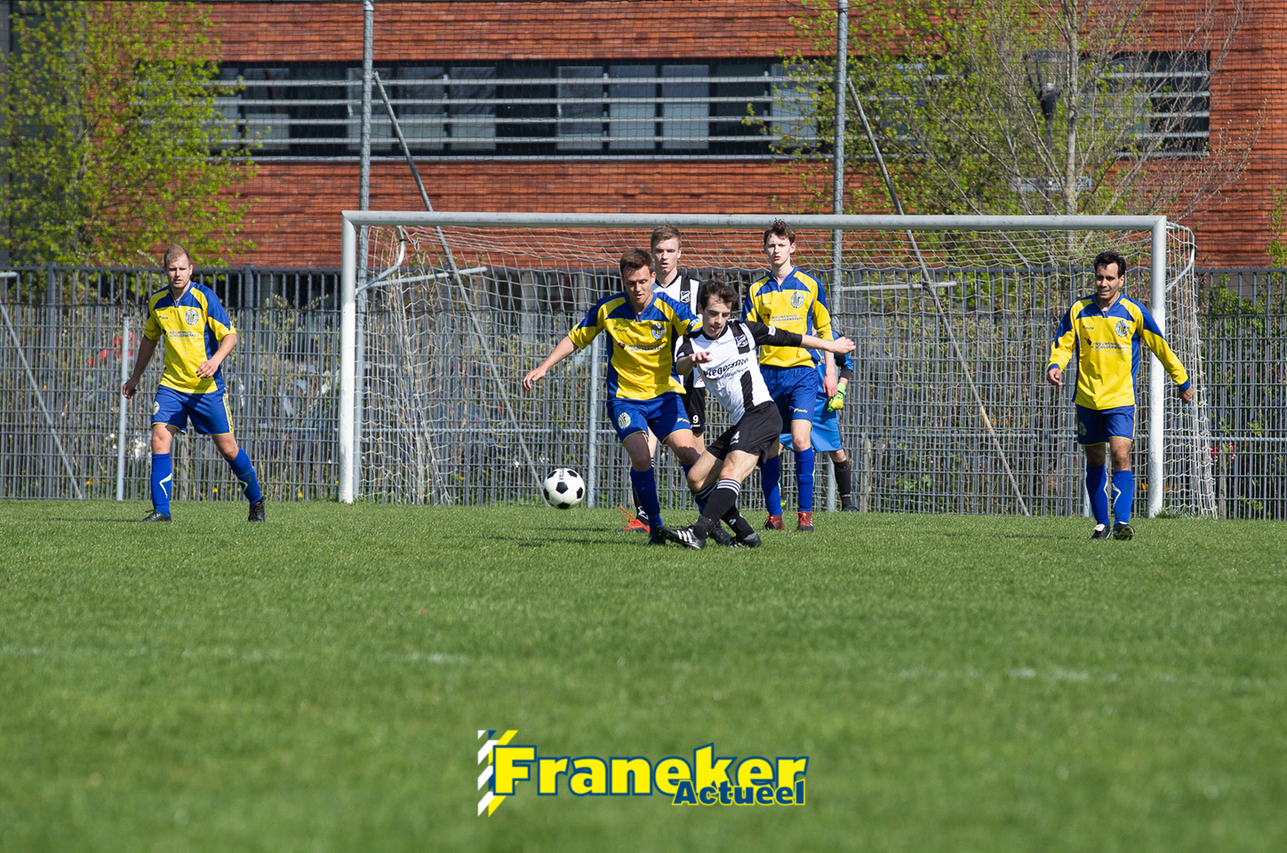 De openingsfase ging gelijk op, noemenswaardige kansen deden zich niet voor. Tot de 14e minuut. Jan Lyckle Bijlsma stoomde op en vond aanvoerder Mart Kuperus die op zijn beurt Marco de Groot in stelling bracht. De Franeker spits trof vorige week twee keer de lat, nu wipte hij de bal over doelman Pieter Oene Smit heen en viel de bal net onder de lat binnen, 1-0. Hierna schakelde Geel Wit een tandje bij en raakt Franeker de grip op het middenveld kwijt.