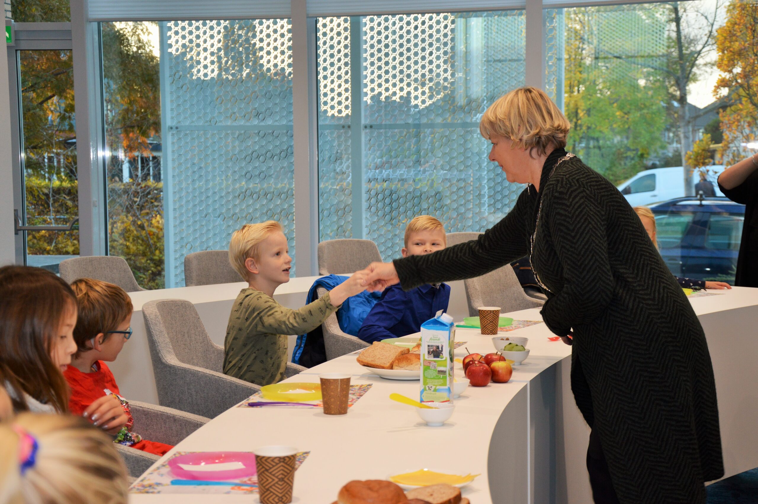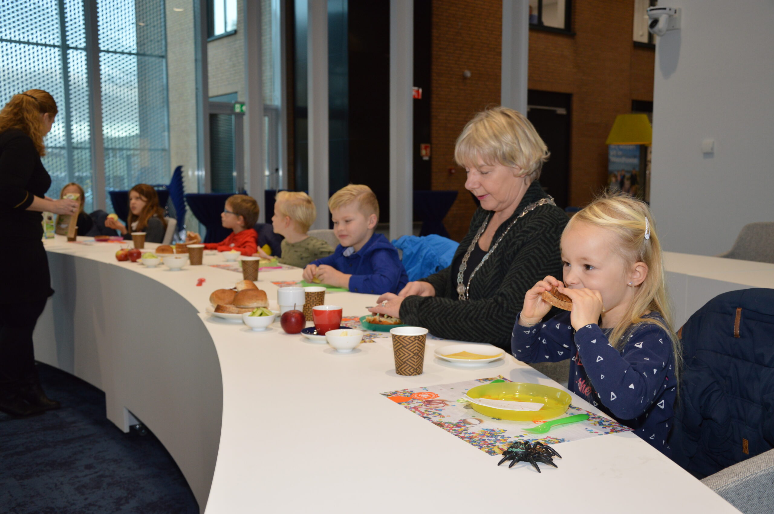 Burgemeester Marga Waanders van Waadhoeke onderstreept hiermee dat het belangrijk is om gezond te ontbijten. Net zoals de 275 collega-burgemeesters in het hele land. Aan tafels van de raadsleden maakten de kinderen en de burgemeester kennis met elkaar en mochten de kinderen vragen stellen aan de burgemeester.