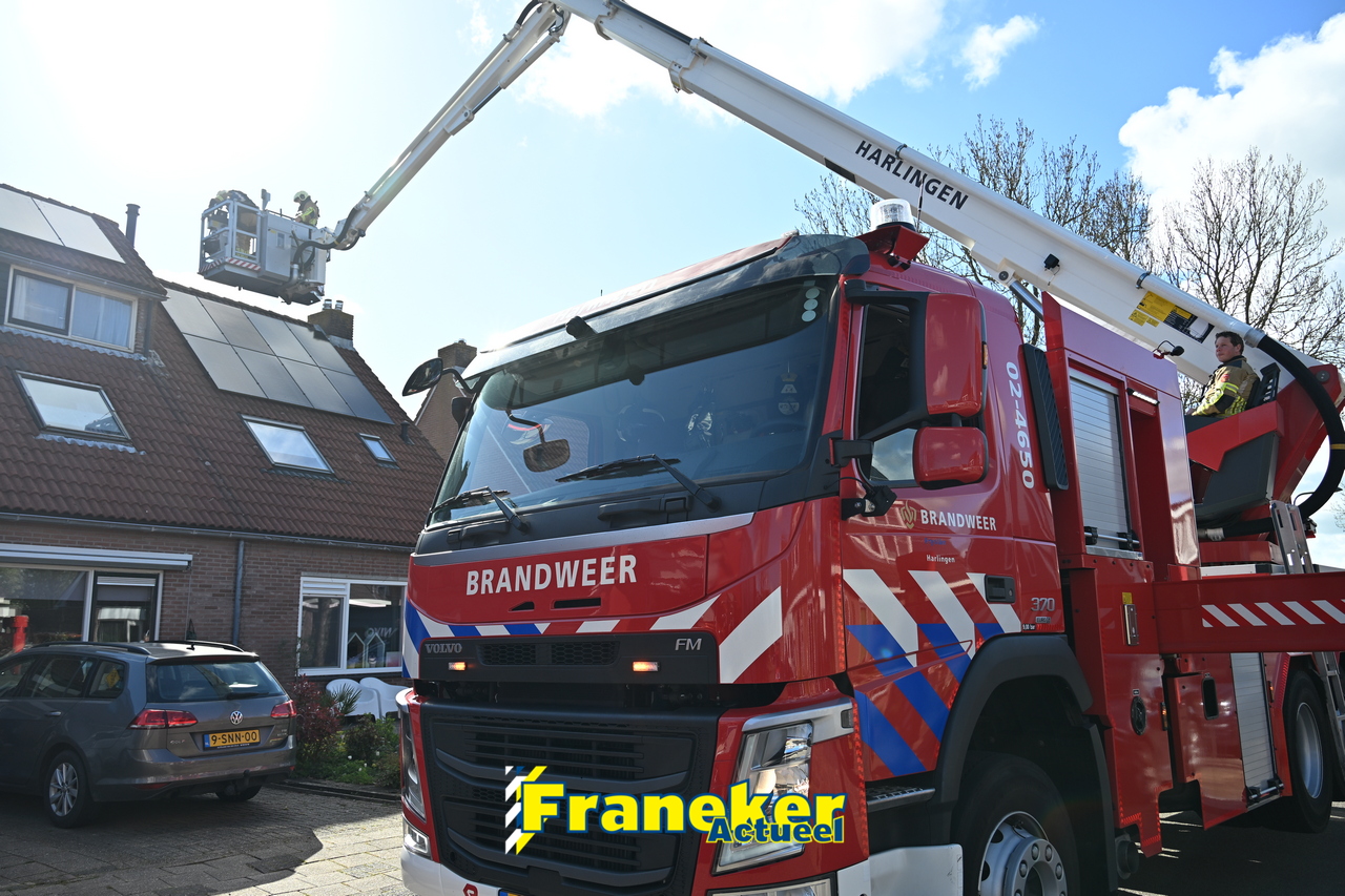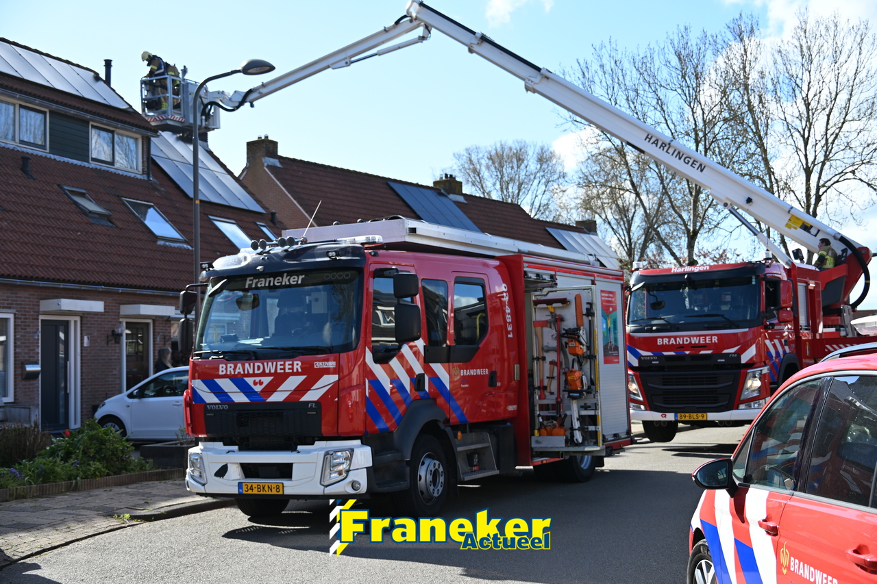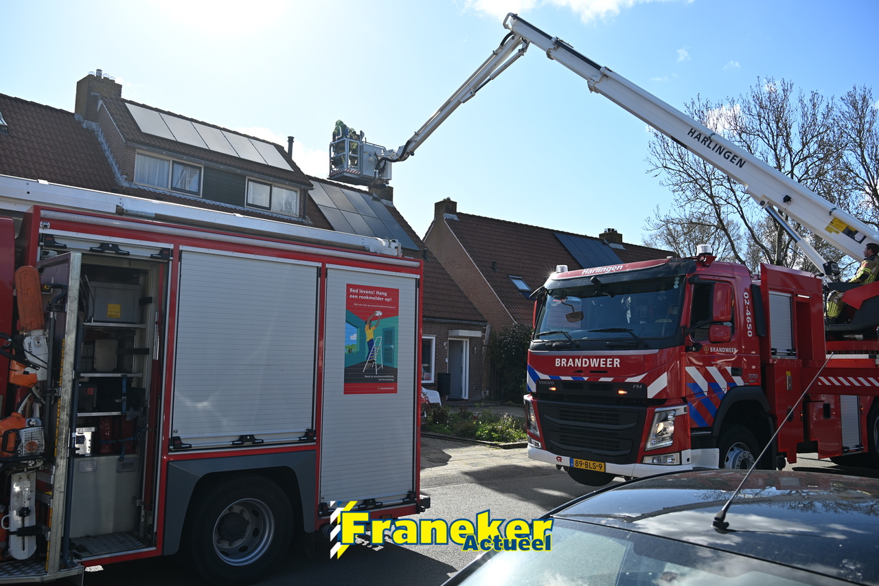 De brandweer arriveerde met onder meer een tankautospuit uit Franeker en een hoogwerker uit Harlingen. De brand bleek te zijn ontstaan in een pelletkachel. Brandweerlieden hebben de schoorsteen gecontroleerd en gereinigd om verdere risico’s uit te sluiten.