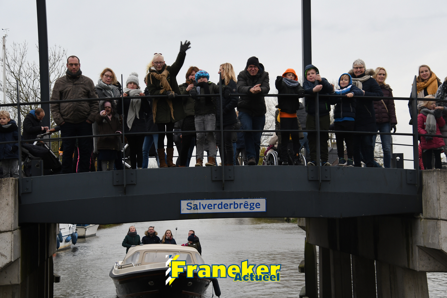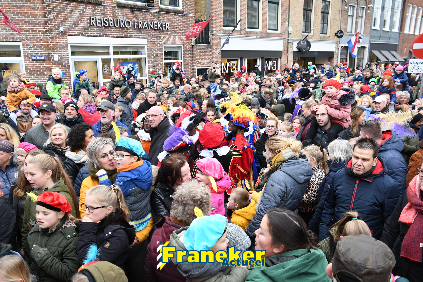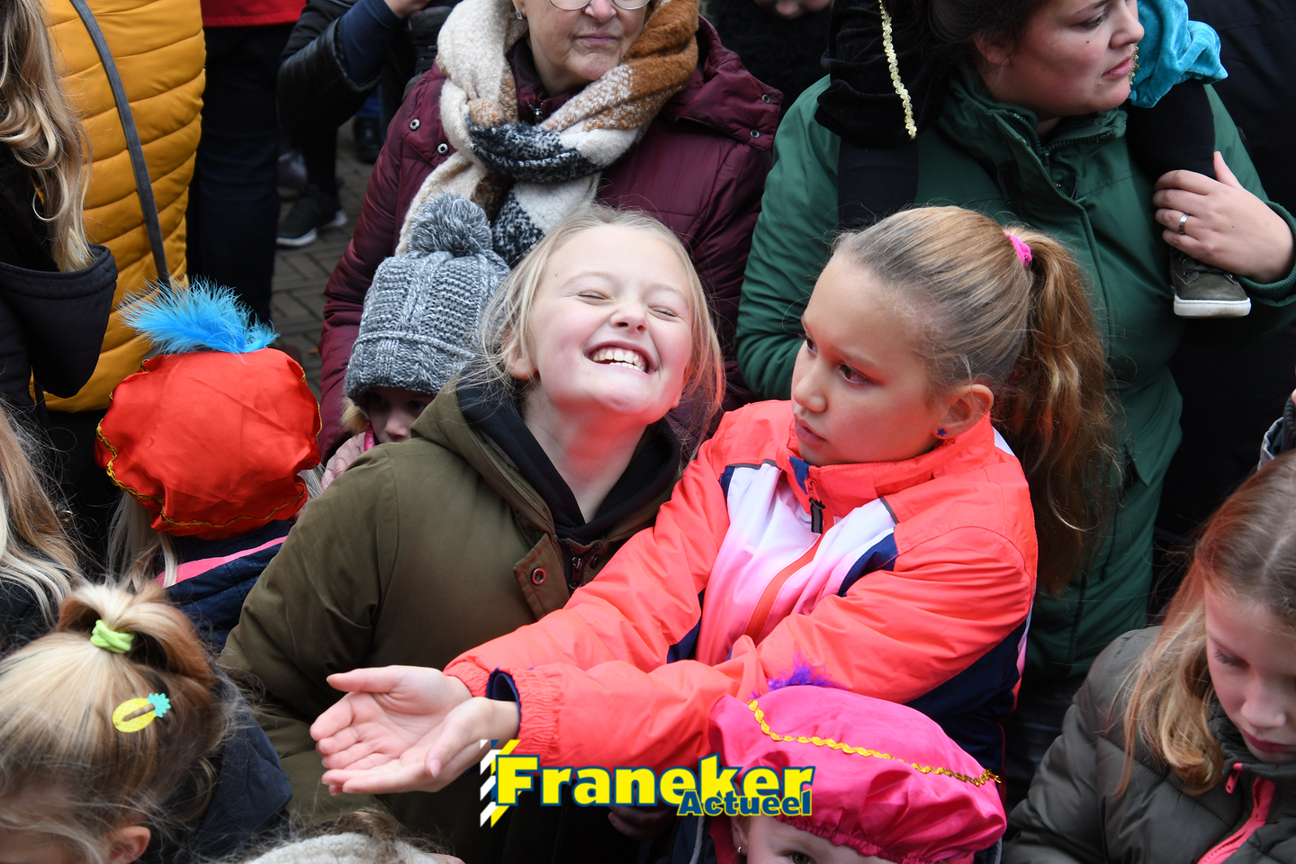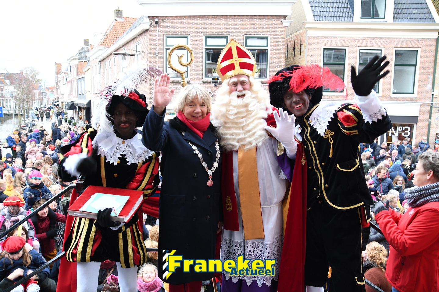 Sinterklaas is weer veilig in Franeker aangekomen. Met een warm welkom werd Sinterklaas en zijn zwarte pieten van de boot gehaald en door vele, vele toeschouwers luid toezongen.