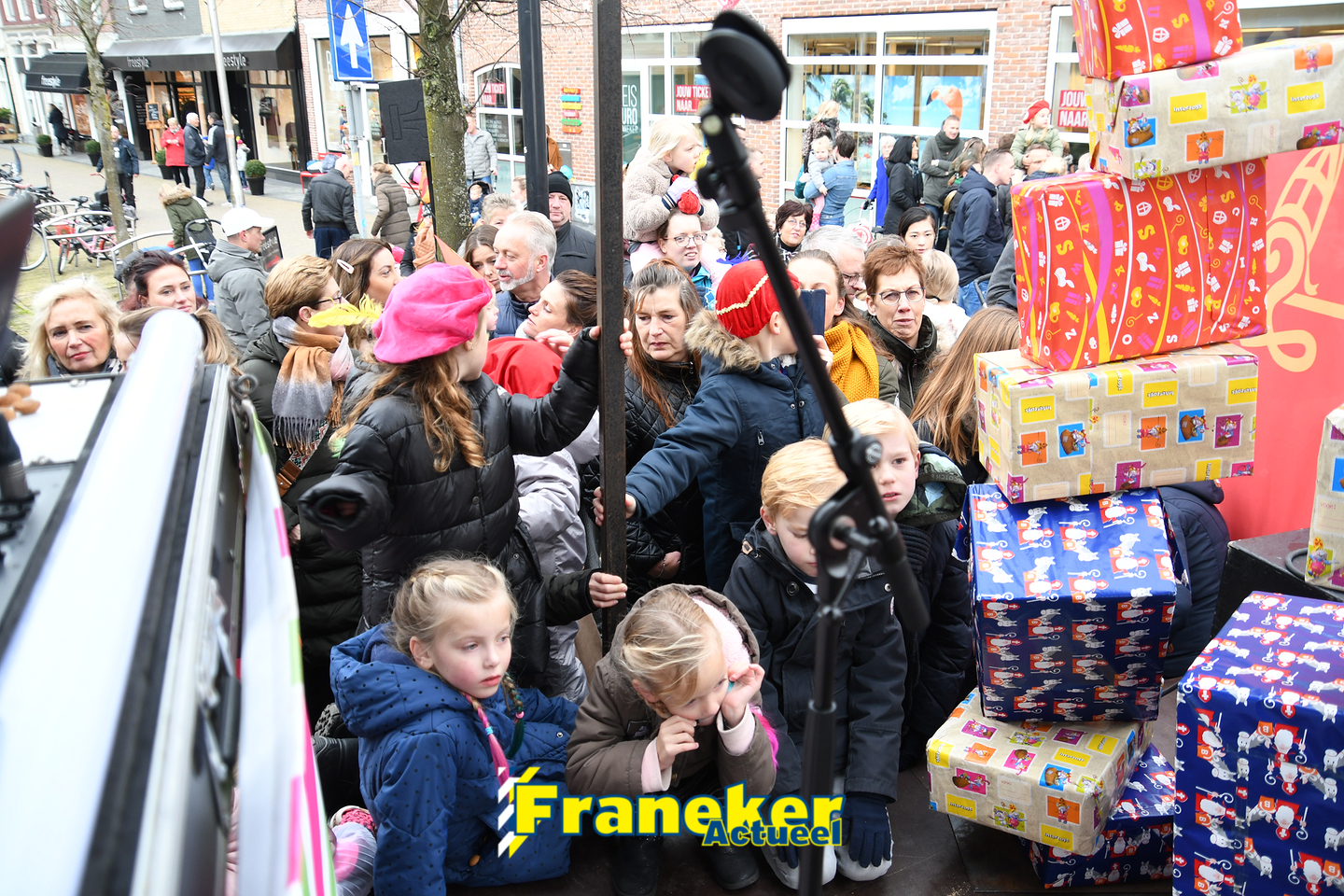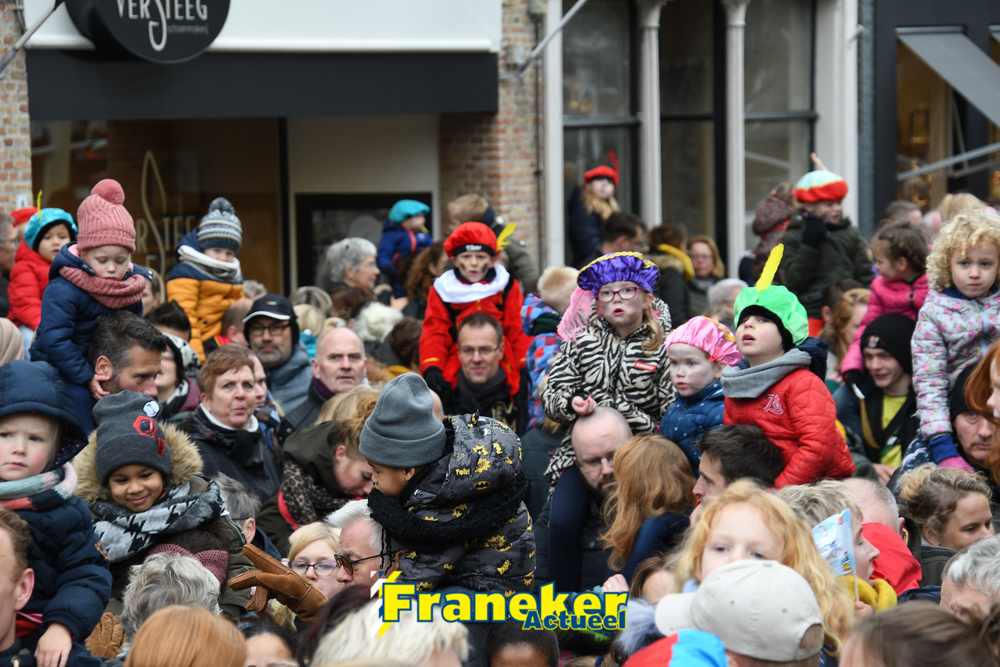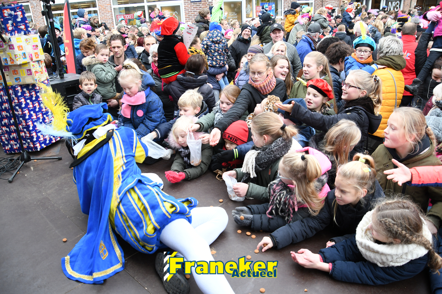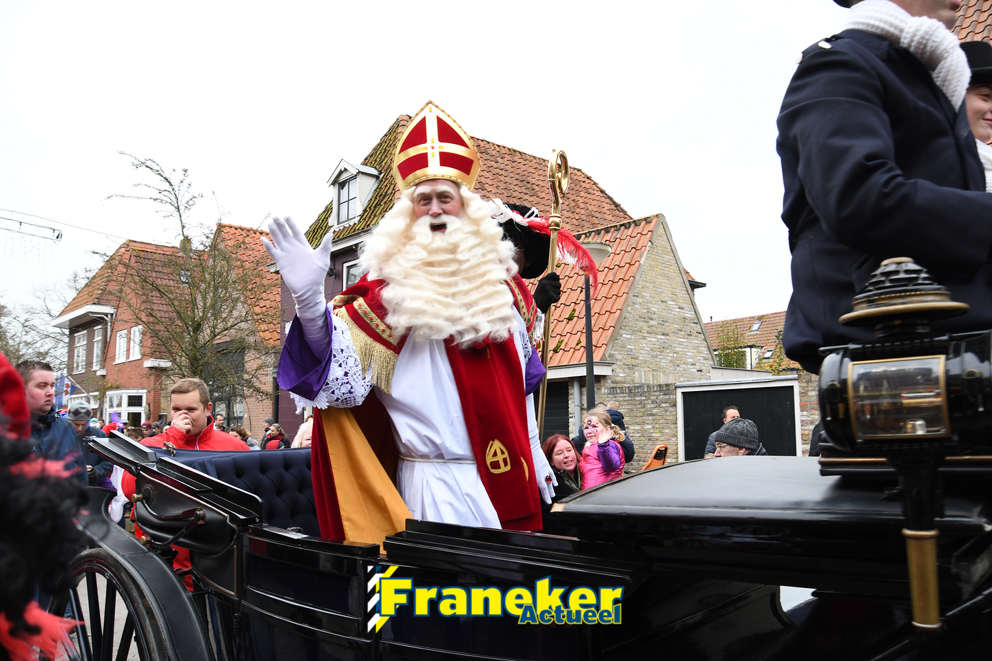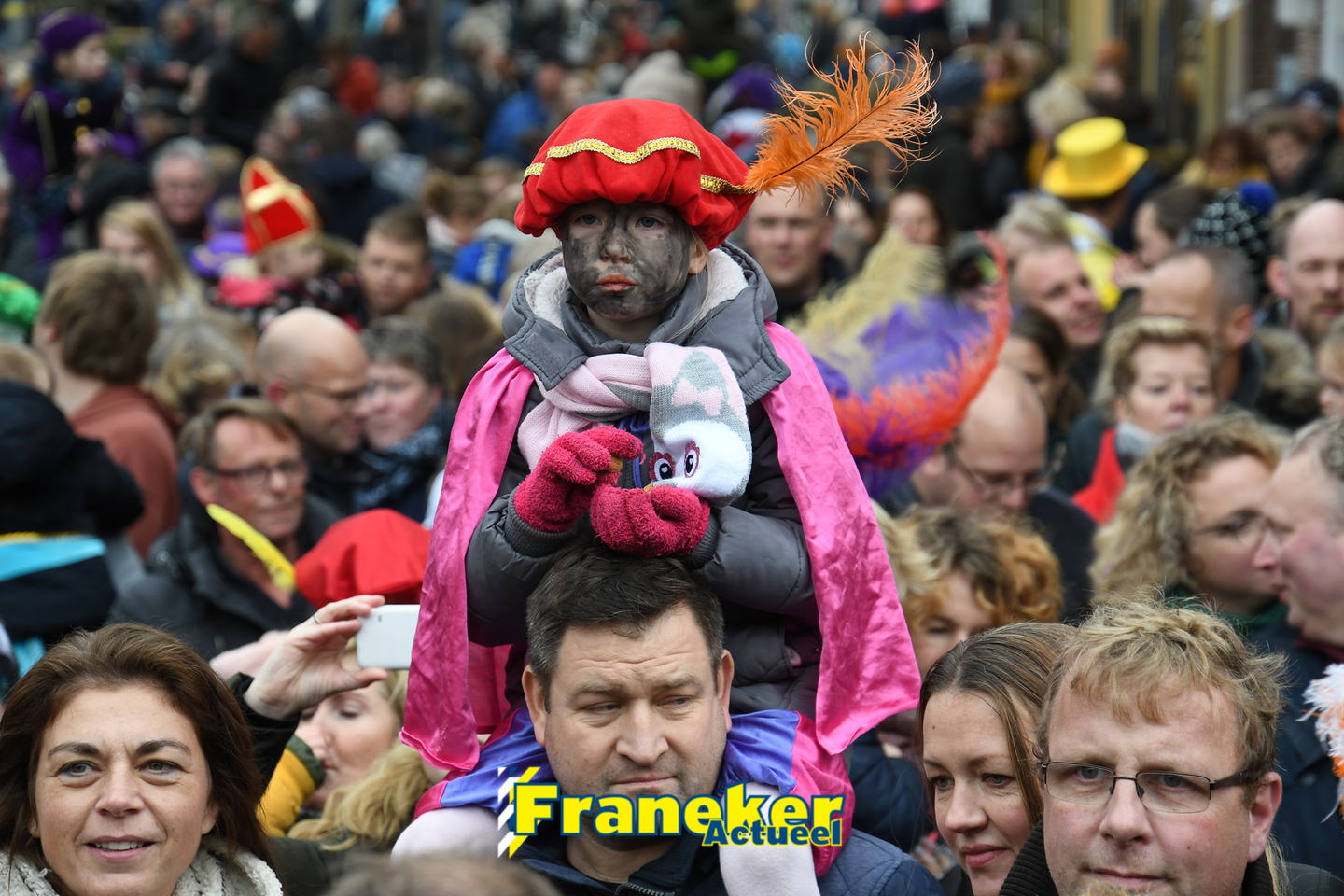 Sinterklaas is weer veilig in Franeker aangekomen. Met een warm welkom werd Sinterklaas en zijn zwarte pieten van de boot gehaald en door vele, vele toeschouwers luid toezongen.