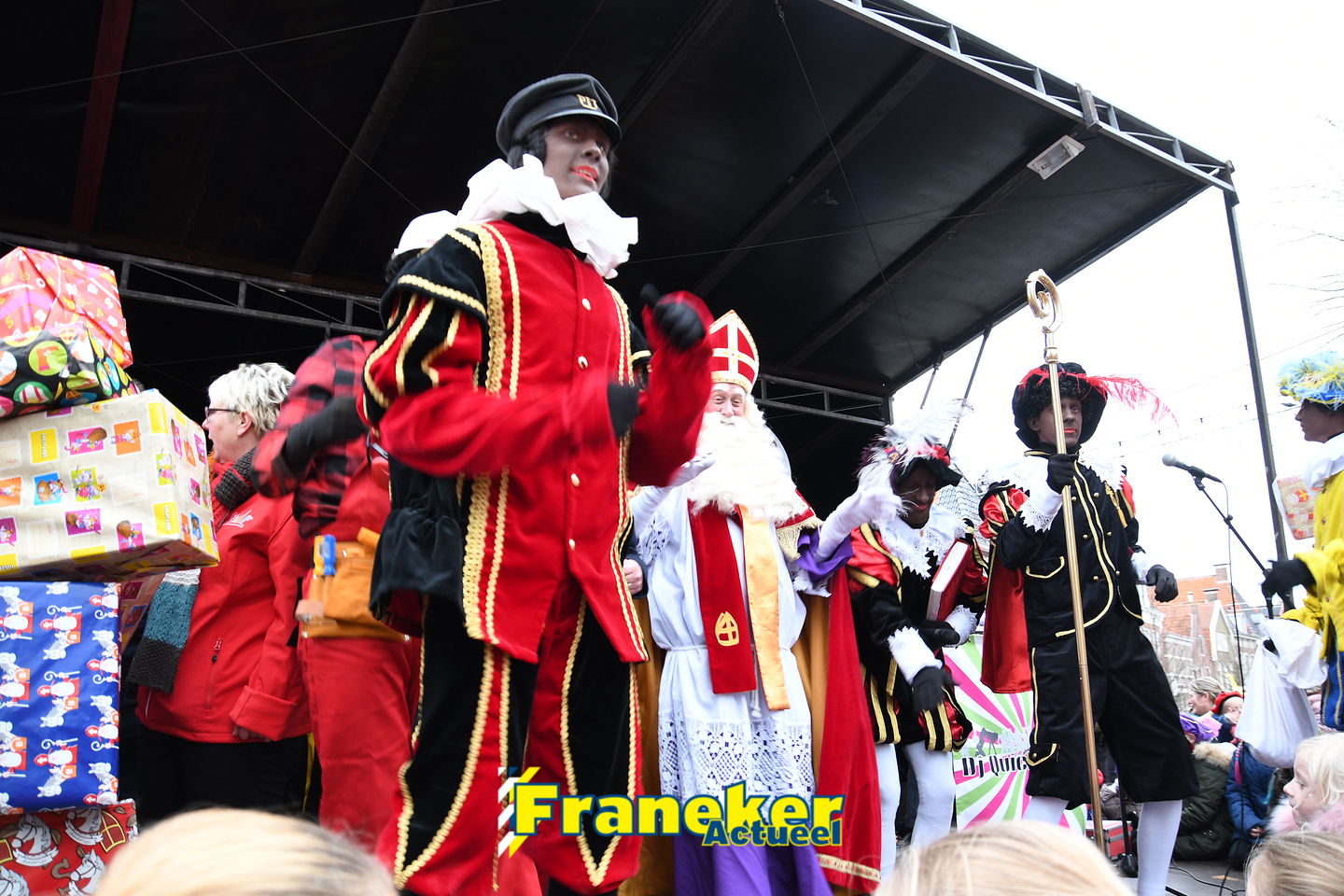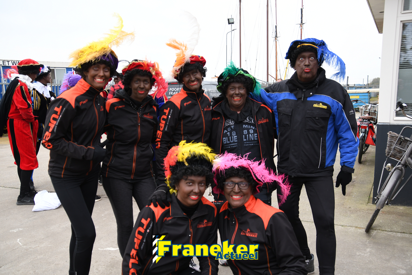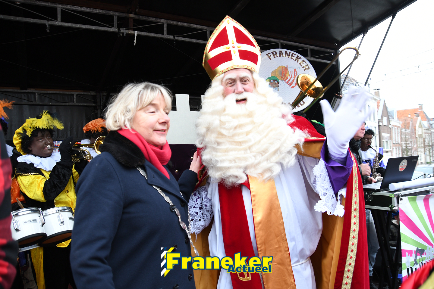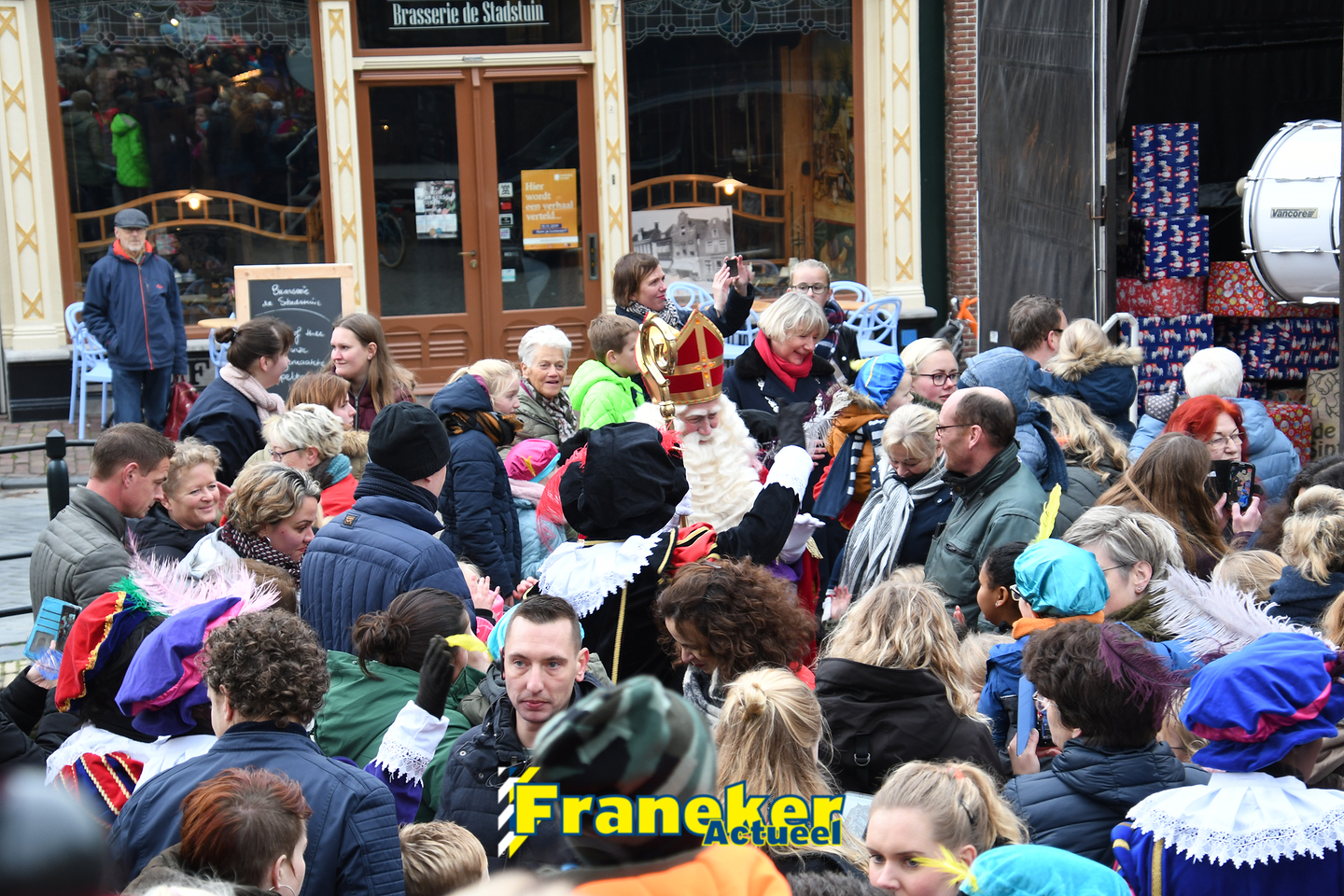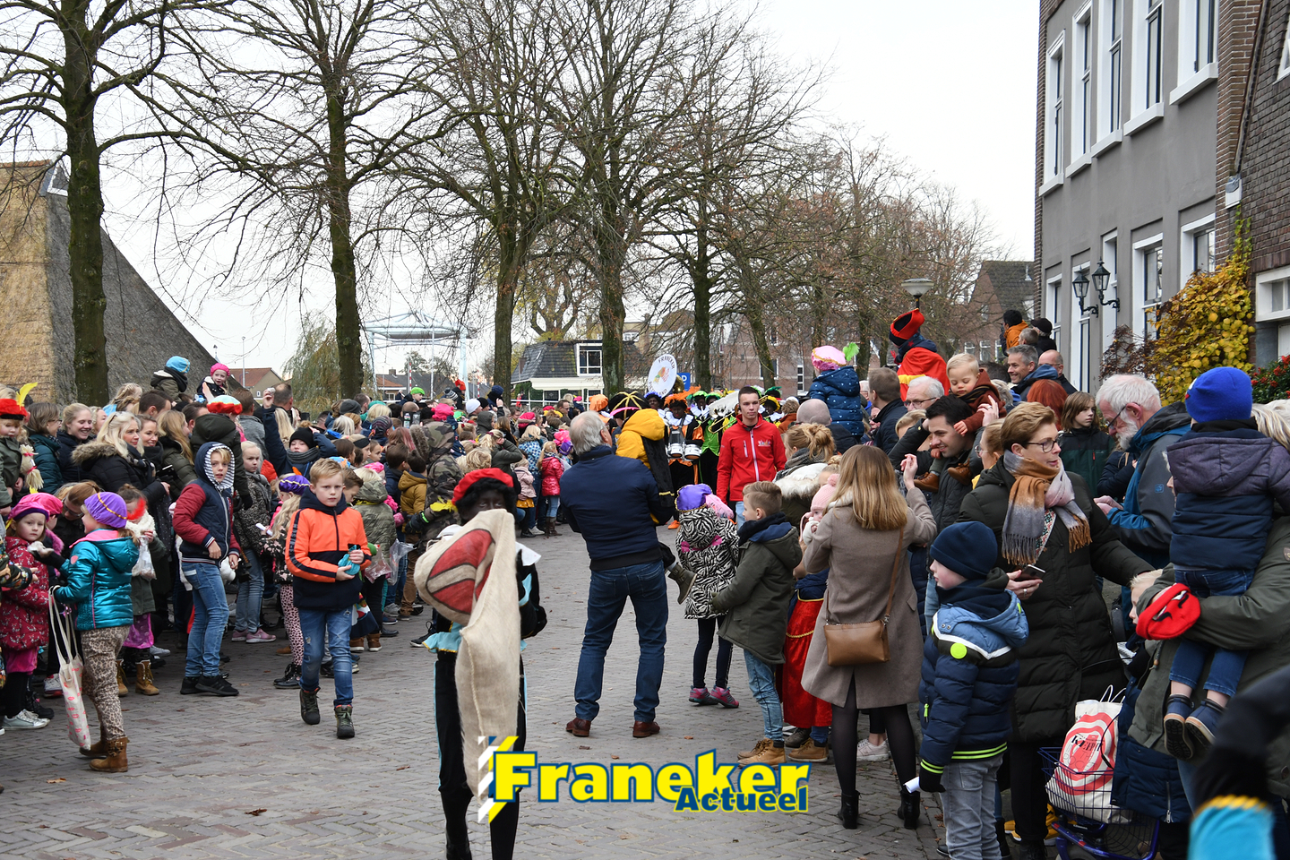Onder gelukkig droge weersomstandigheden kwam de Sint met drie boten vol met cadeaus en zijn traditionele zwarte Pieten weer aan in Franeker en werd er voet aan wal gezet aan de Turfkade en werd er volop feest gevierd met de Franeker Pietenband “Wild Geraas”