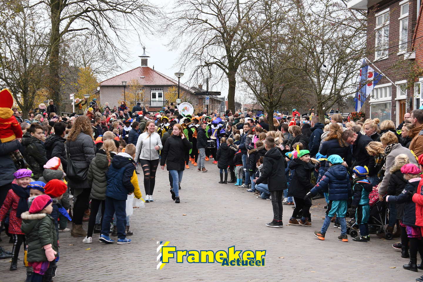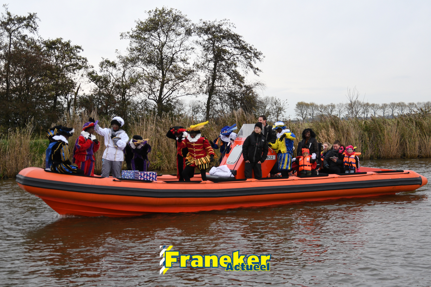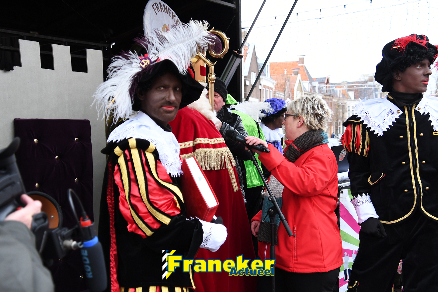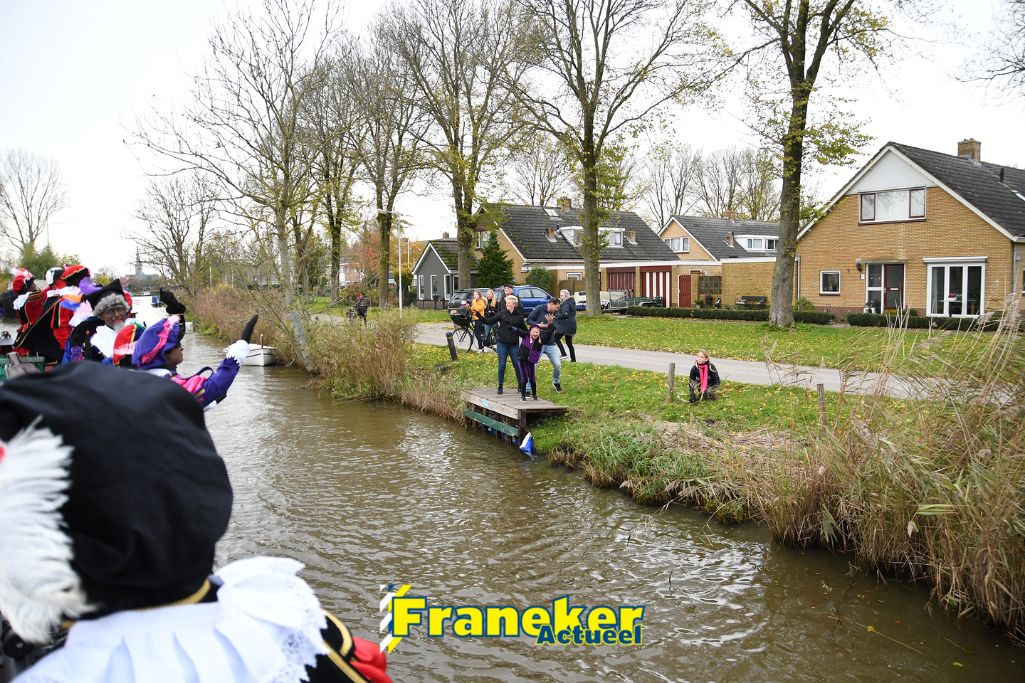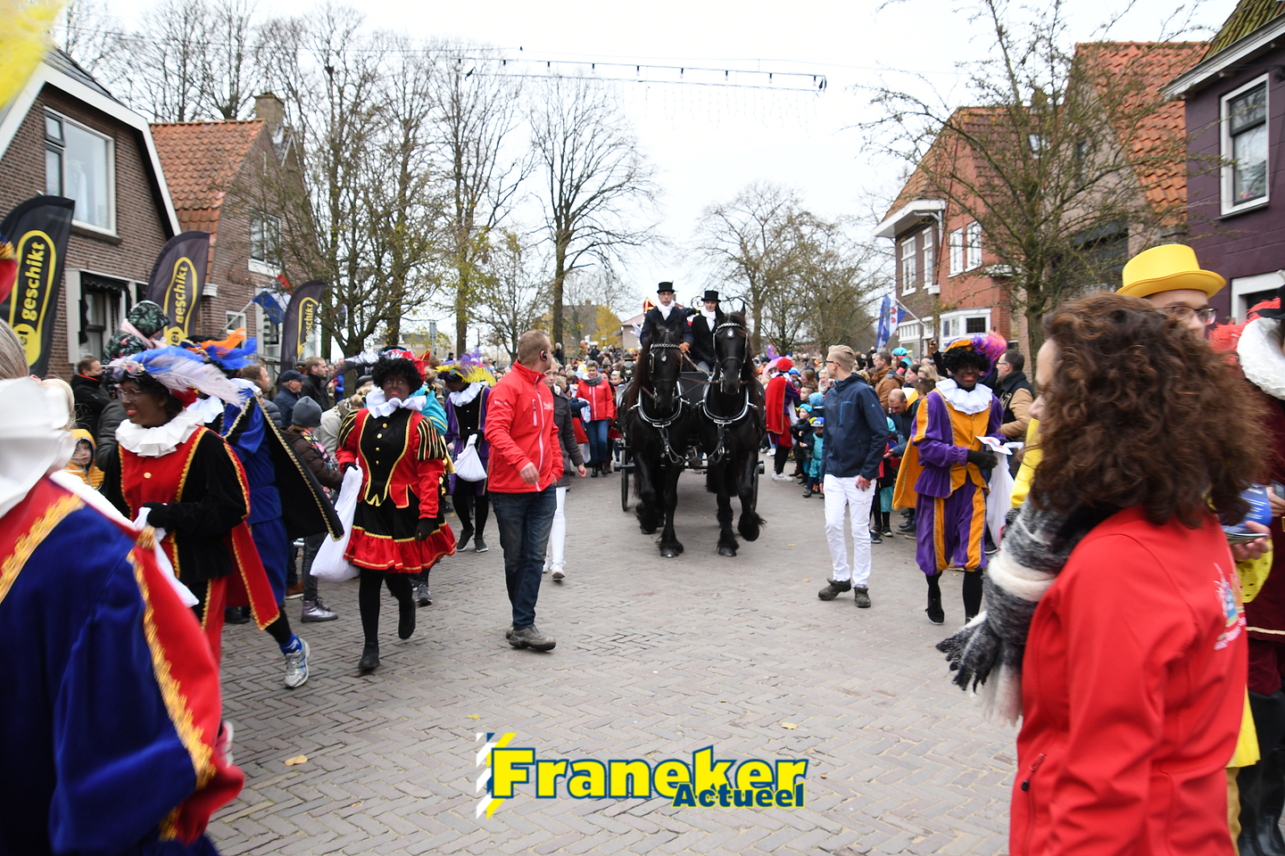 Onder gelukkig droge weersomstandigheden kwam de Sint met drie boten vol met cadeaus en zijn traditionele zwarte Pieten weer aan in Franeker en werd er voet aan wal gezet aan de Turfkade en werd er volop feest gevierd met de Franeker Pietenband “Wild Geraas”