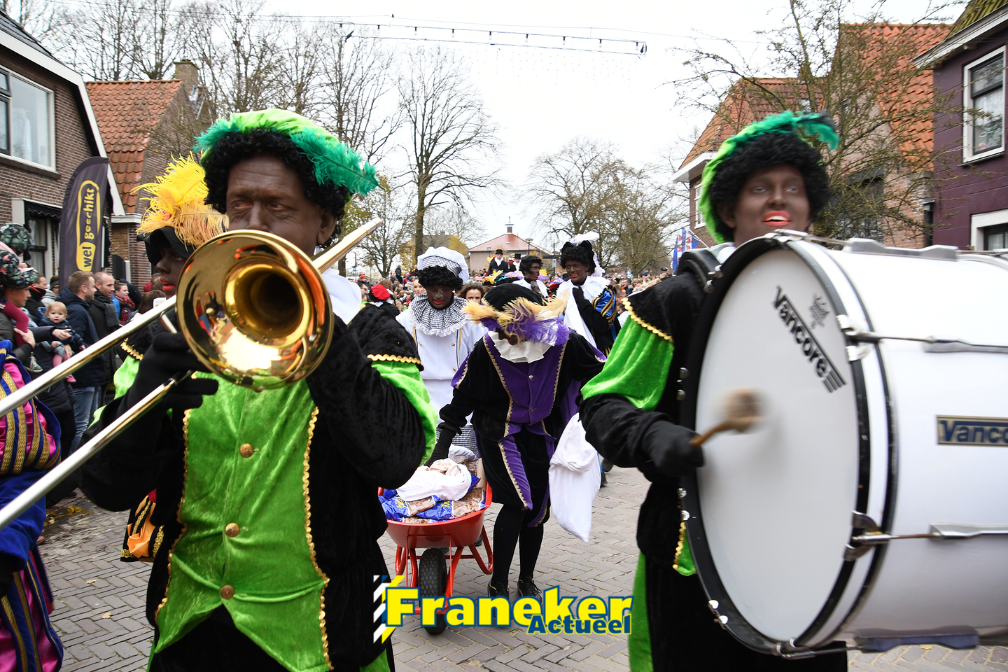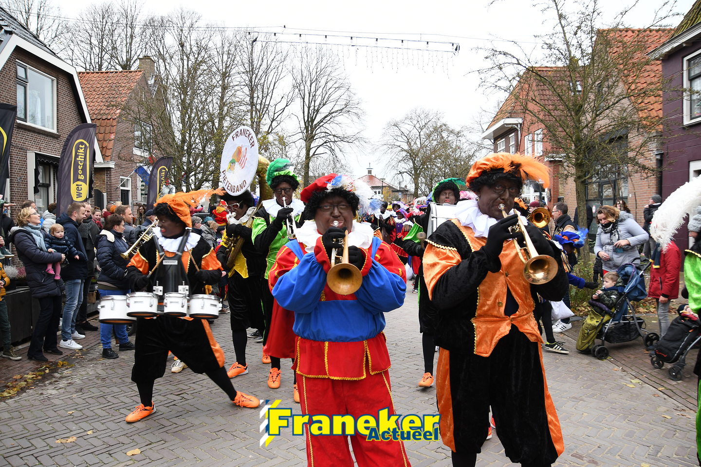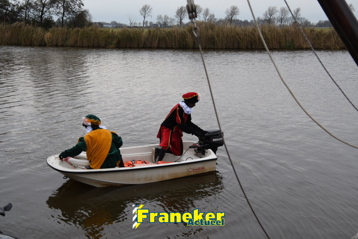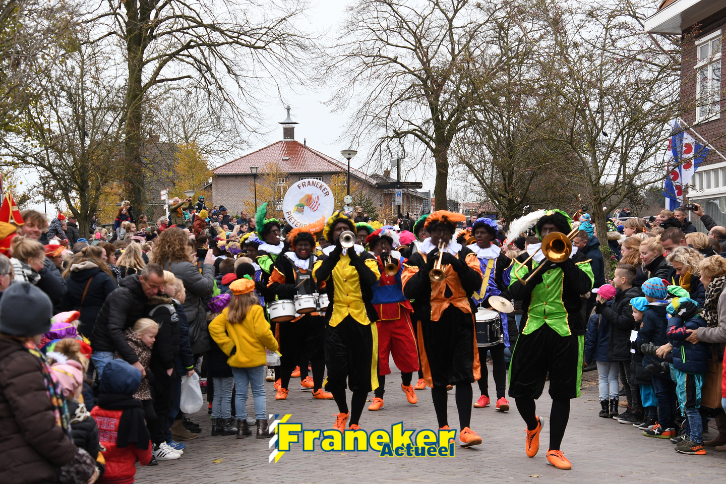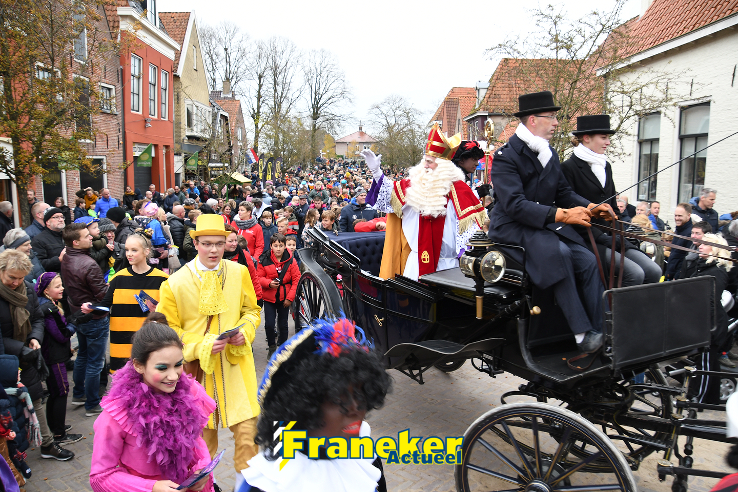 Onder gelukkig droge weersomstandigheden kwam de Sint met drie boten vol met cadeaus en zijn traditionele zwarte Pieten weer aan in Franeker en werd er voet aan wal gezet aan de Turfkade en werd er volop feest gevierd met de Franeker Pietenband “Wild Geraas”