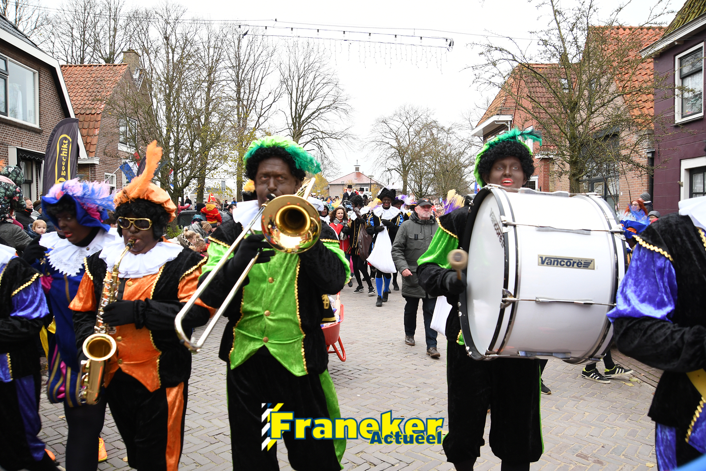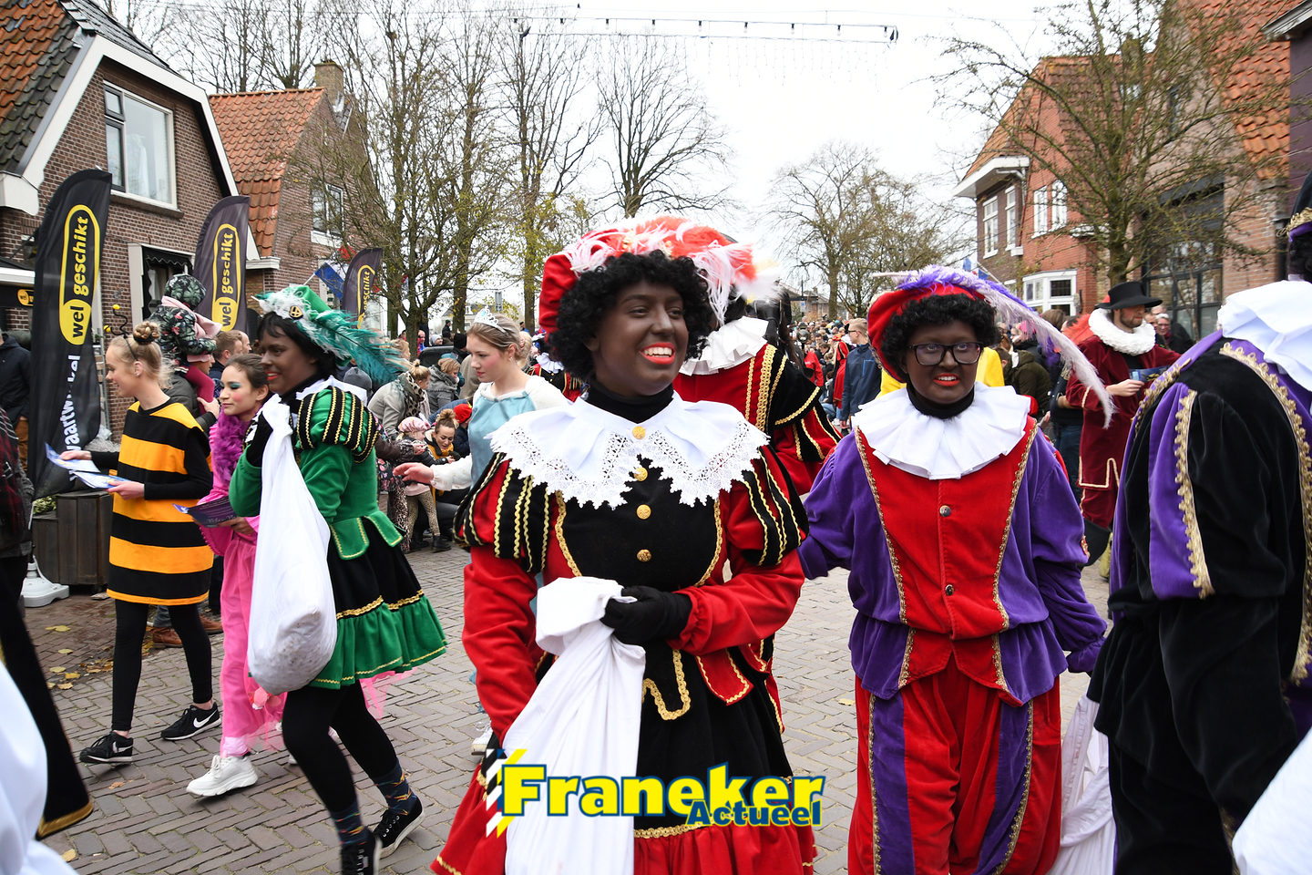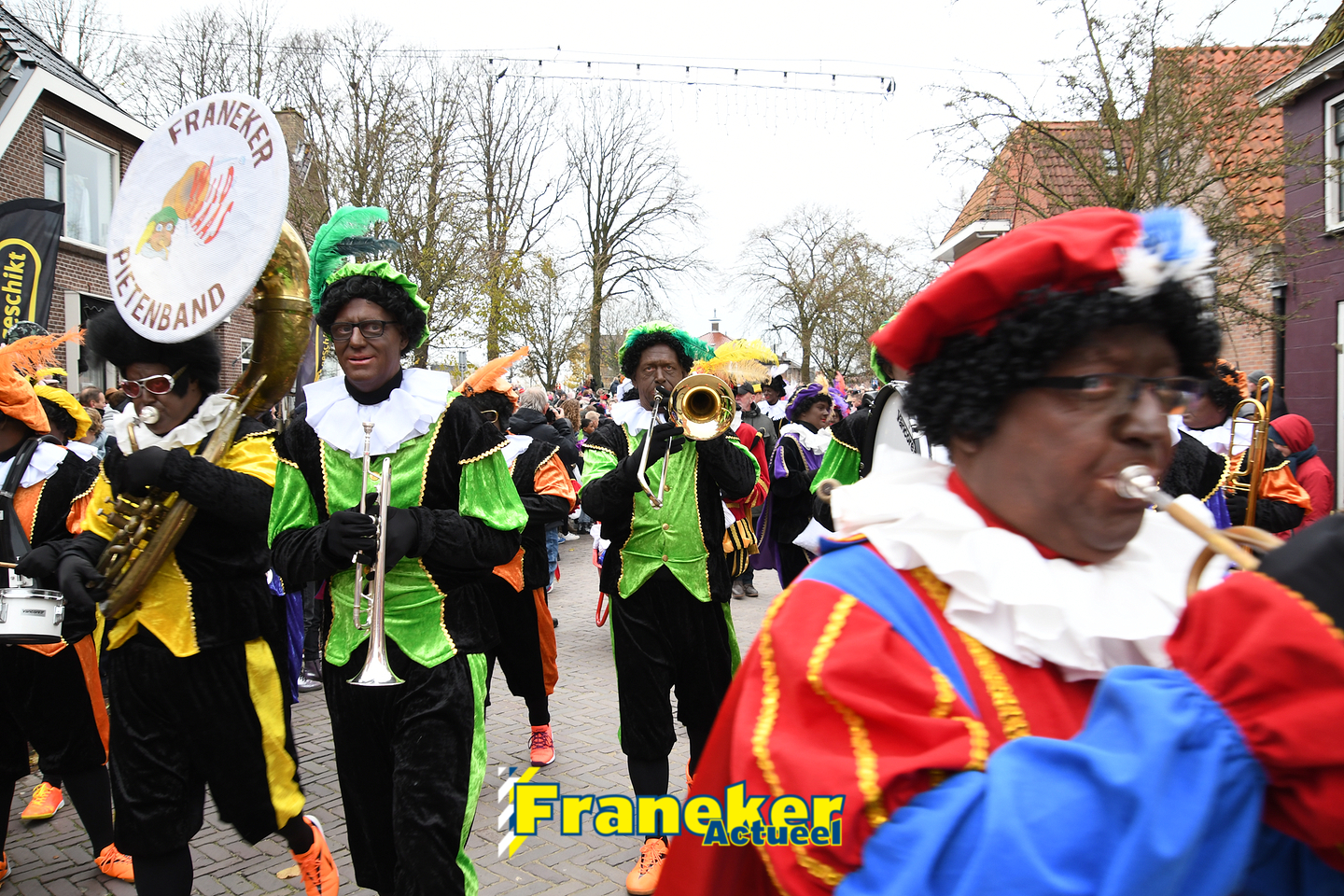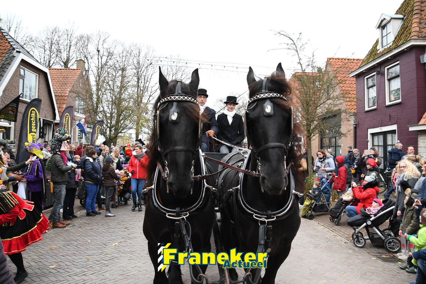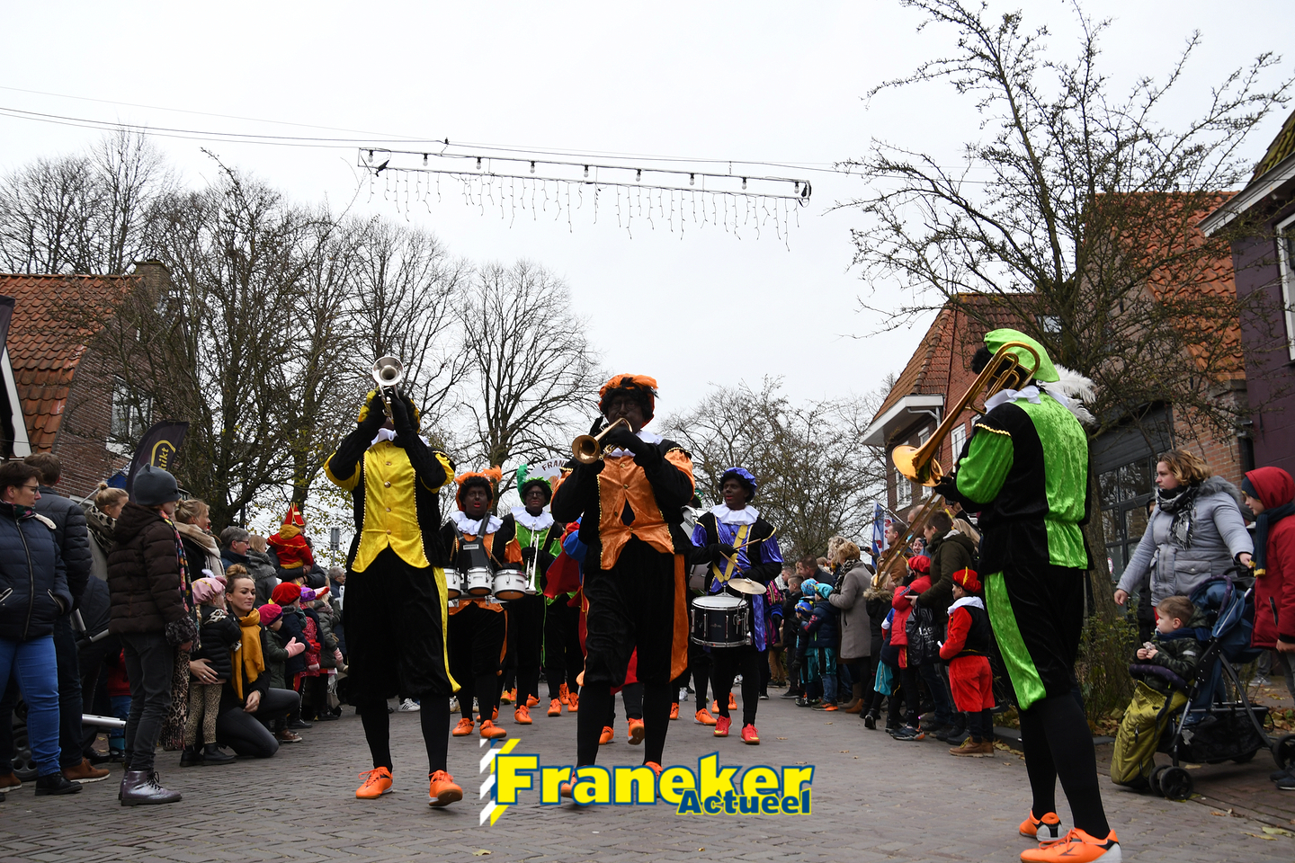 Onder gelukkig droge weersomstandigheden kwam de Sint met drie boten vol met cadeaus en zijn traditionele zwarte Pieten weer aan in Franeker en werd er voet aan wal gezet aan de Turfkade en werd er volop feest gevierd met de Franeker Pietenband “Wild Geraas”