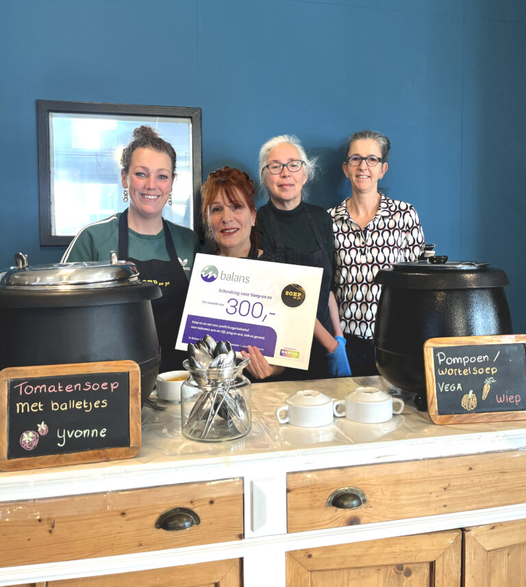 Dat werd afgelopen zondag extra onderstreept door een bijzondere ontmoeting. Jelly van der Velde, eigenaar van In Balans in Franeker, kwam langs. Voor haar betekent gezondheid meer dan voeding alleen. Het gaat ook over ontspanning, verbinding en samen zijn. Vanuit die gedachte overhandigde zij een cheque van €300 aan Soep en zo – een prachtige donatie waarmee in De Skûle weer vele kommen soep kunnen worden geserveerd.