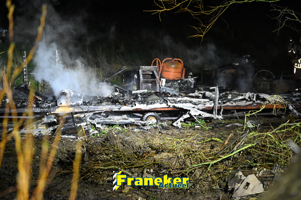 In de nacht van maandag op dinsdag is een stacaravan aan de Harlingervaart in Franeker volledig door brand verwoest. Ondanks de snelle inzet van de brandweer bleek er bij aankomst geen redden meer aan; het object brandde tot de grond toe af.