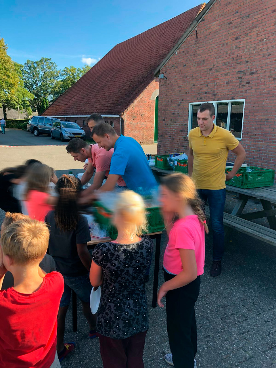 Dit jaar werden de kinderen en de vrijwilligers in Appelscha en Bakkeveen op twee verschillende dagen verrast met een geheel verzorgde barbecue door de vereniging Ronde Tafel 101 Harlingen. De Tafelaars – zo worden de leden van de Ronde Tafel genoemd – hadden werkelijk aan alles gedacht. De mannen bleken geweldige ‘masterchefs’ te zijn en dat niet alleen. Na het eten werd alles opgeruimd en schoongemaakt en vermaakten ze de kinderen nog door samen te voetballen, te basketballen en voor te lezen. De kinderen genoten volop zo ook de begeleiding. Daarnaast was het voor de vrijwilligers ook even bijkomen in een soms hectische week. Het dagelijkse ‘werk’ werd hen immers even door de Tafelaars uit handen genomen.