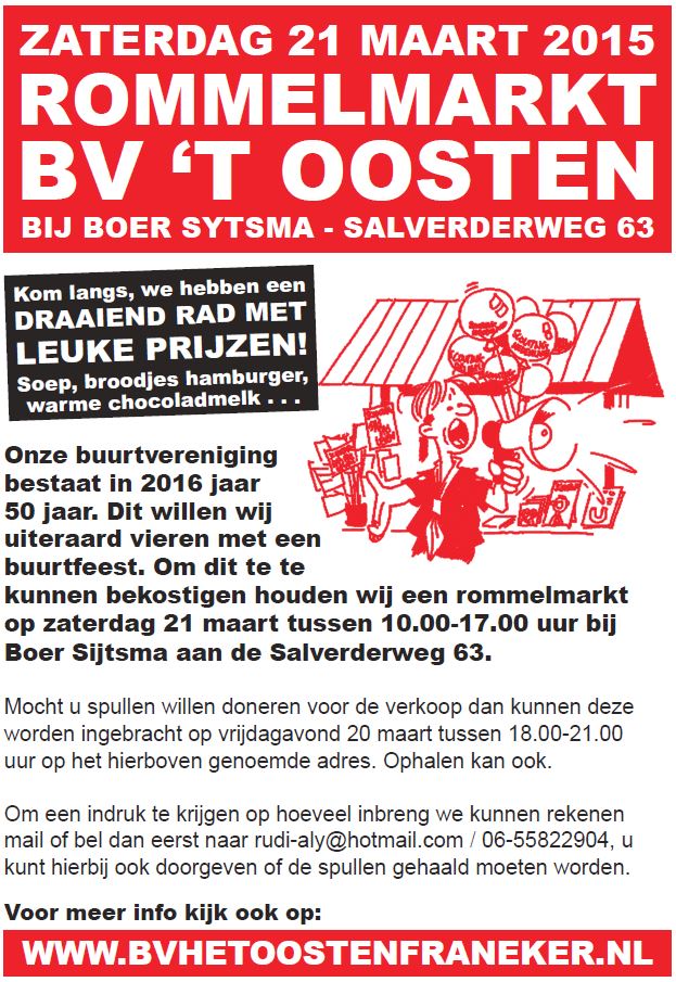 21 maart rommelmarkt bv ‘T Oosten Franeker