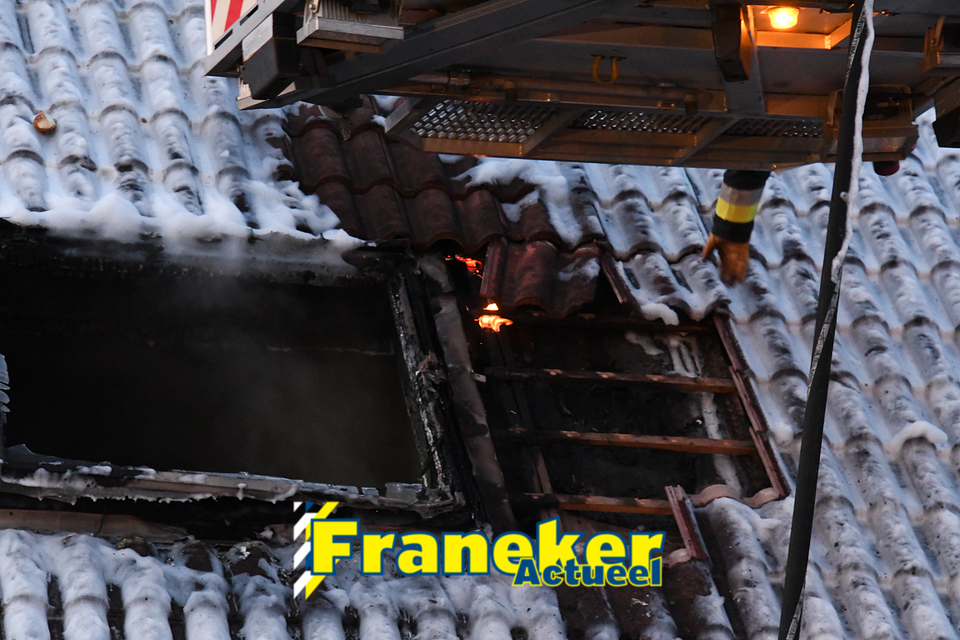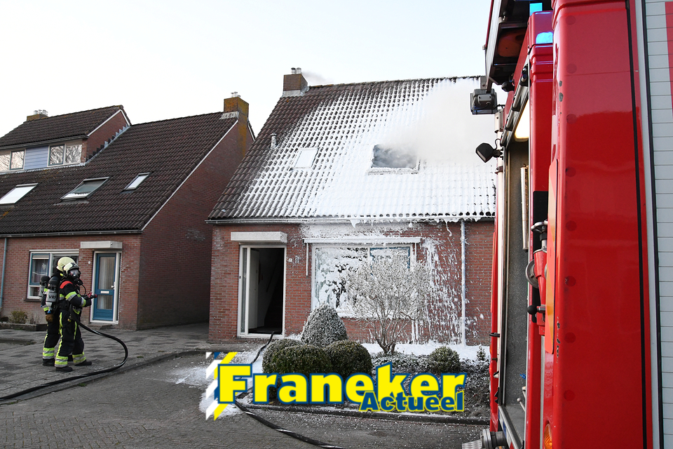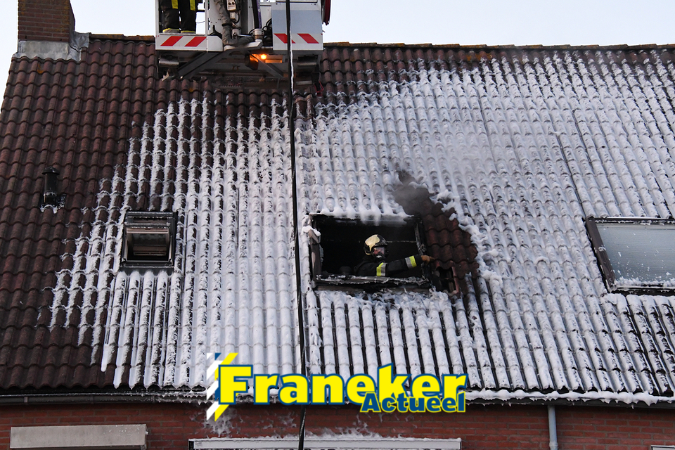De Franeker brandweer was snel ter plaatse en heeft de woningbrand direct geblust met schuim en met de hoogwerker werd een deel van het dak weggehaald om er zeker van te zijn dat de brand helemaal uit was.