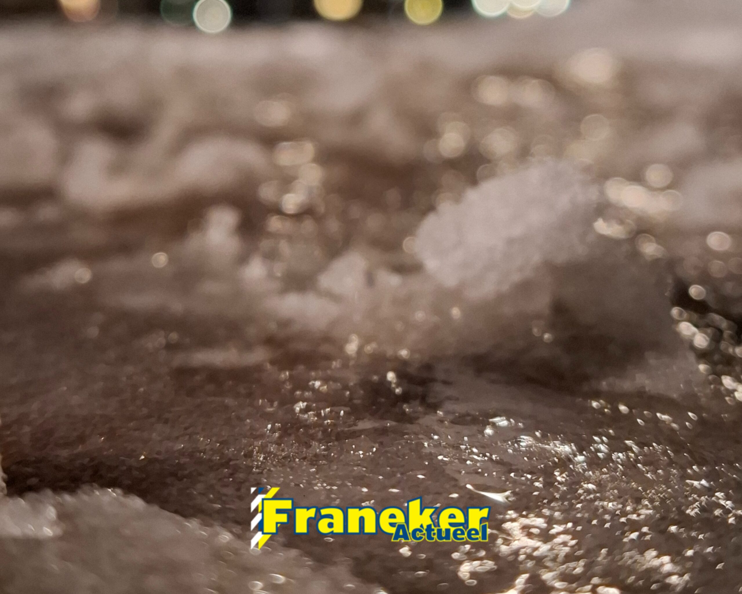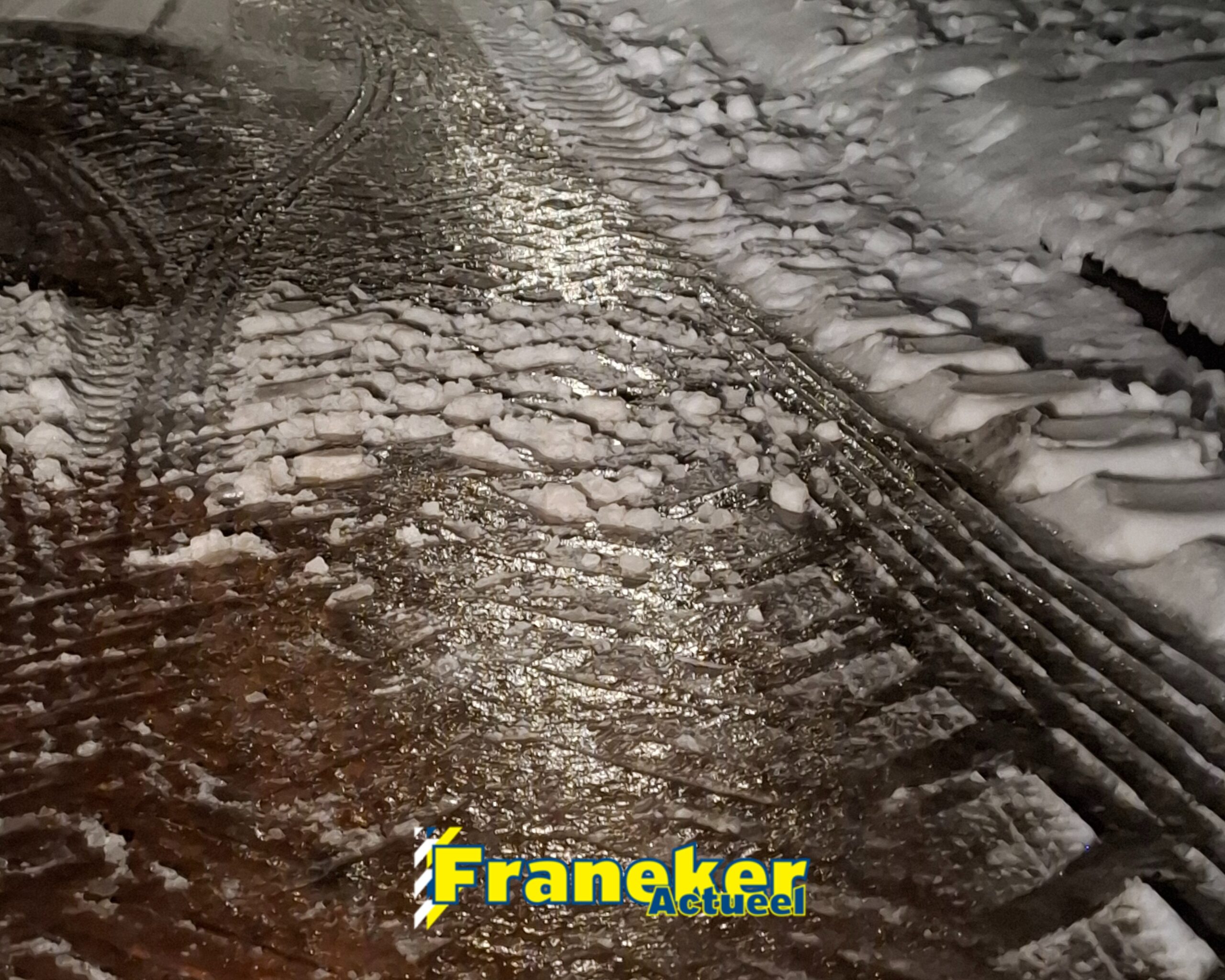 Zoals op de bovenstaande beeld te zien is, zijn de wegen in Franeker momenteel bedekt met een verraderlijke laag smeltende sneeuw en ijs. Hoewel de thermometer vannacht rond de 2 graden boven nul aangeeft, blijft de wegdektemperatuur onder het vriespunt. De regen die nu valt, bevriest direct op de bevroren ondergrond, wat leidt tot een (onzichtbare) spekgladde ijslaag (ijzel).