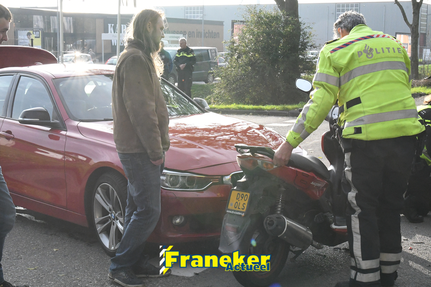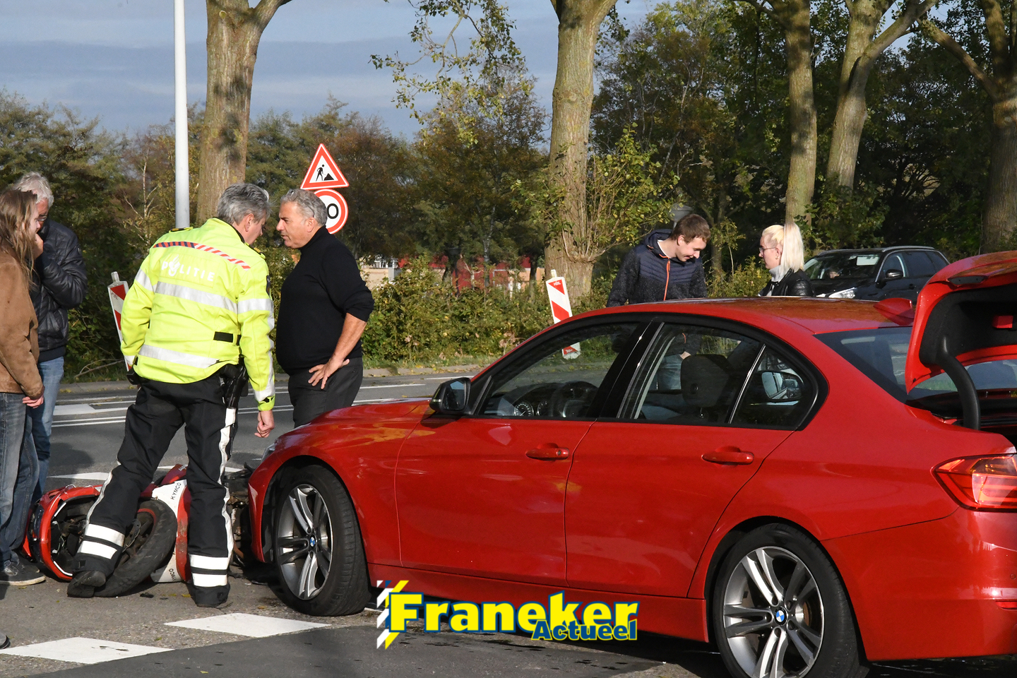 Woensdagmiddag rond 16:10 werd de politie en de ambulance gealarmeerd voor een aanrijding aan de Edisonstraat te Franeker, op de t-splitsing Edisonstraat / Harlingerweg was een auto in botsing gekomen met een scooter waar twee personen op zaten, de personen op de scooter kwamen hierbij hard ten val, één van de twee werd met de ambulance meegenomen voor controle maar was goed aanspreekbaar.
