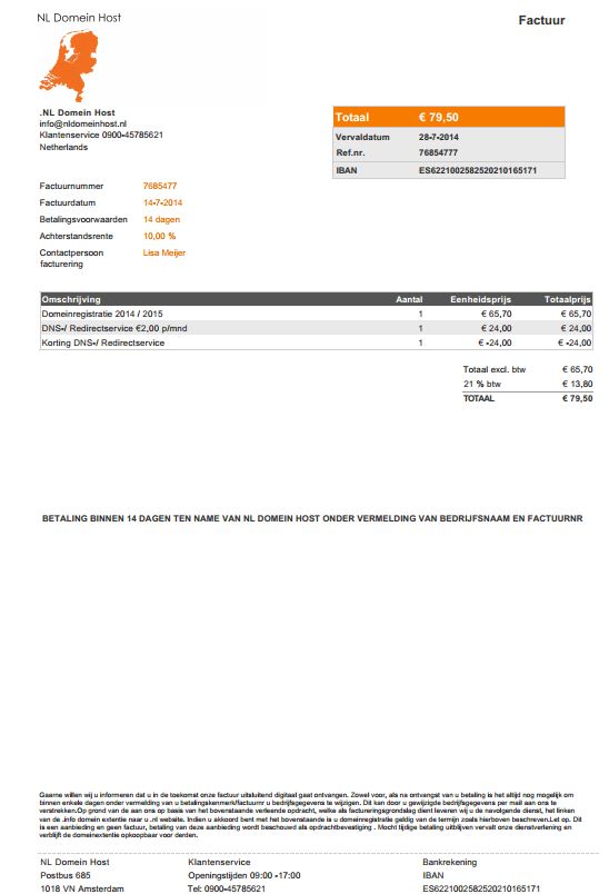 Er schijnen weer spooknota’s in omloop te zijn in Franeker en wijde omgeving, we werden hierop gewezen door enkele lezers. De nota die verstuurd wordt per mail, staat overigens niet op naam van jou, of je bedrijf, er is dus geen betalingsverplichting! Maar mocht je de rekening wel hebben betaald of wilde gaan betalen dan bevestig je dat je akkoord gaat met hun diensten. Dus lees de brief goed, vooral de kleine lettertjes aan de onderkant! Het gaat tenslotte om een bedrag van 79,50 euro.