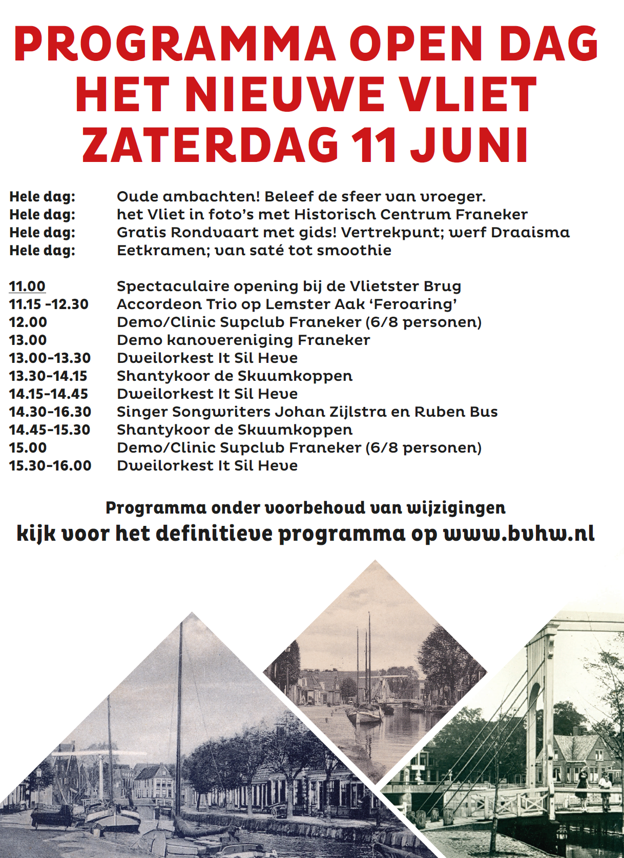 Aanstaande zaterdag is het zover, na een lange tijd van renoveren word het nieuwe (prachtige) Vliet heropend, met muziek en veel activiteiten is er de hele dag van alles te beleven. U leest hieronder het volledige programma. U bent van harte welkom! De officiële opening is 11:00 uur!