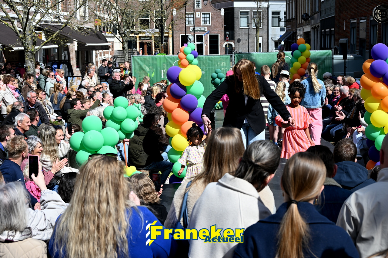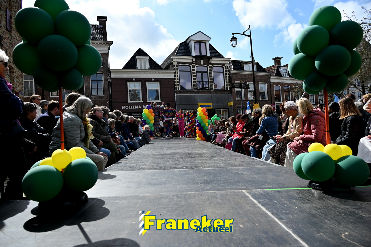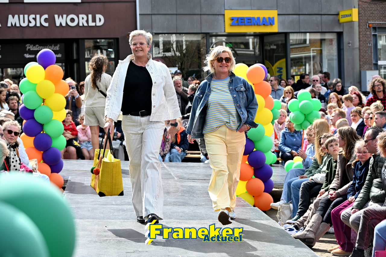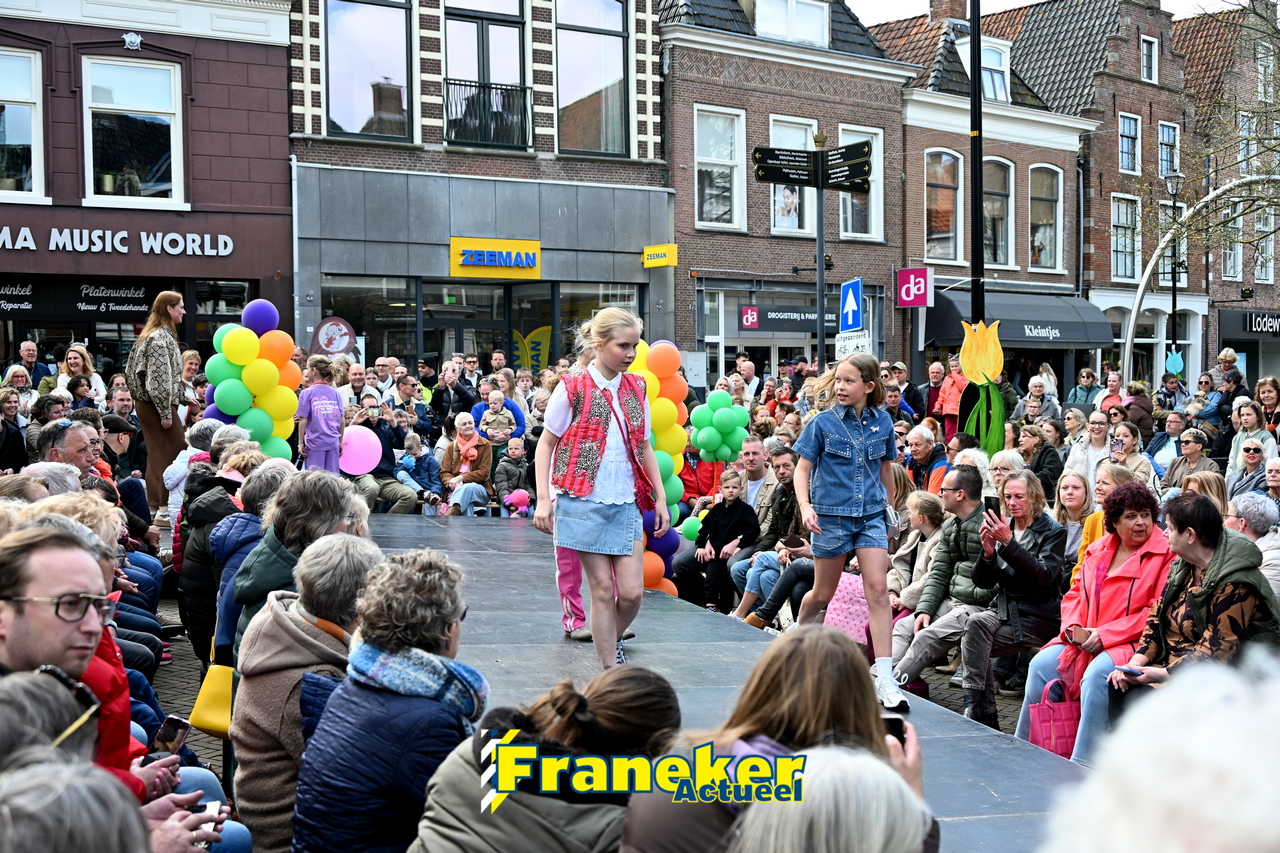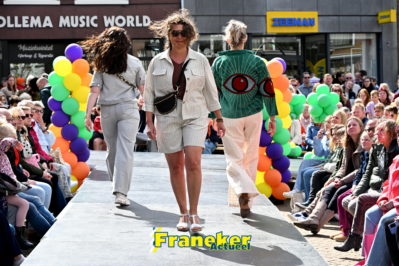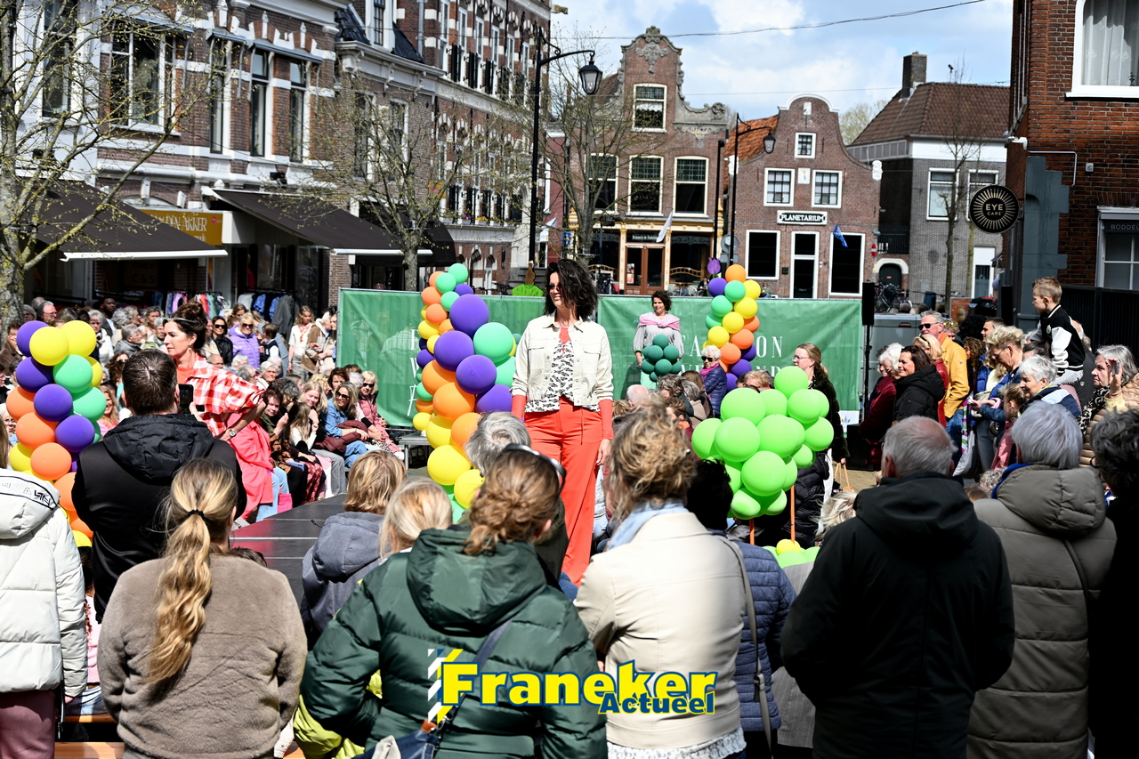 Onder een stralend en regelmatig doorbrekend lentezonnetje vormde het Raadhuisplein in Franeker vanmiddag het kloppende hart van de modewereld. Want op zondag 12 april vond de langverwachte modeshow van het Fashion Weekend weer plaats en de opkomst was groots.