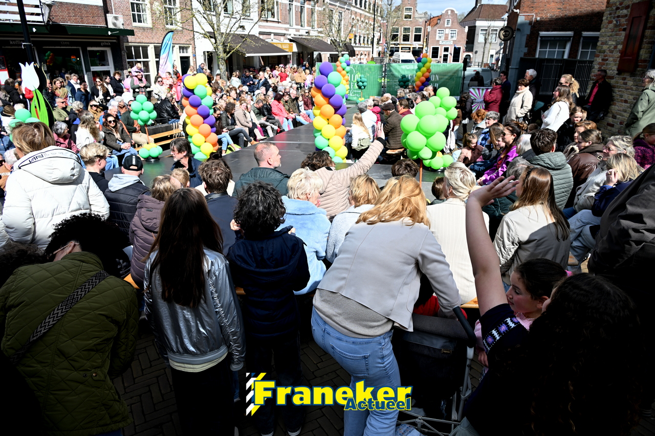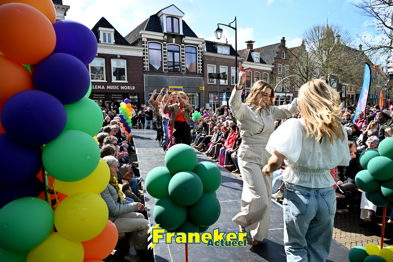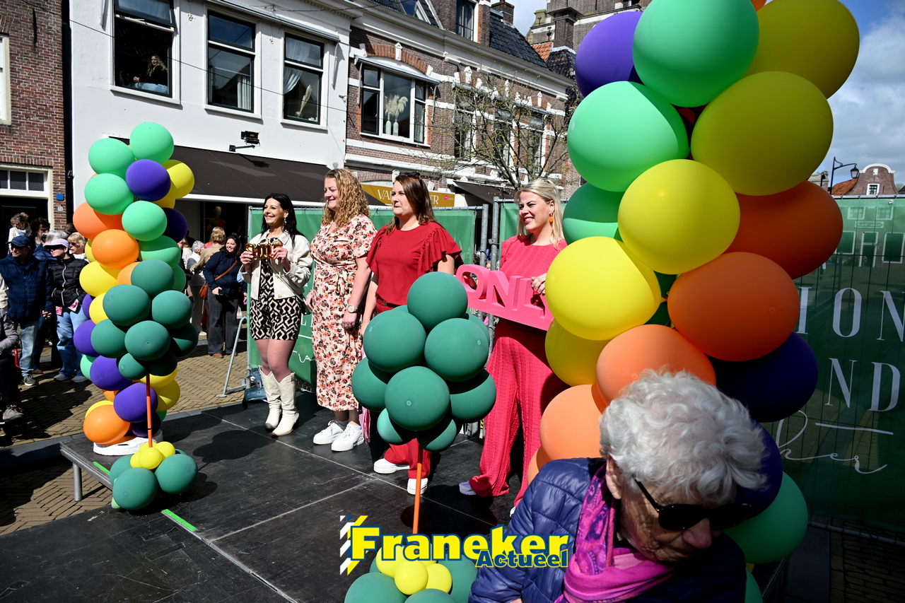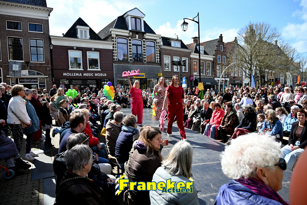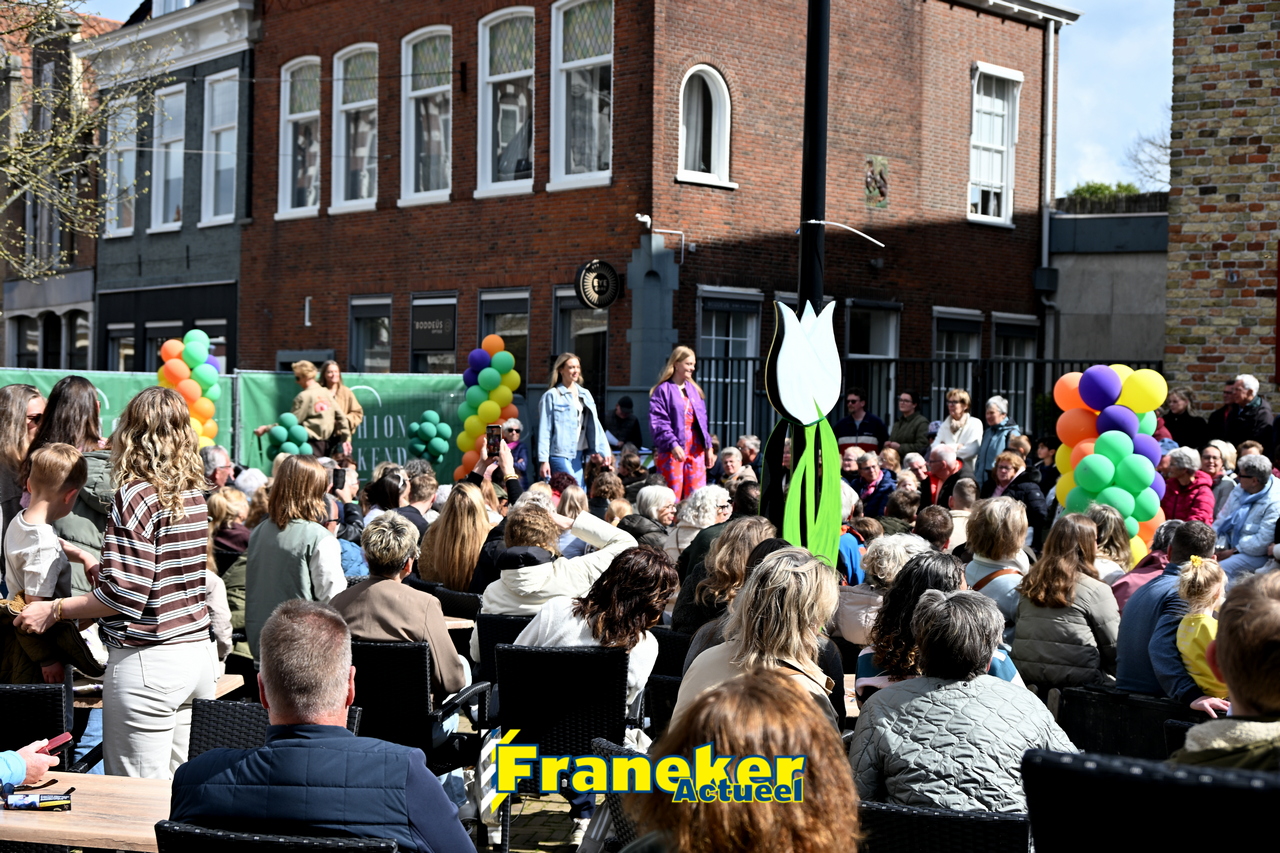 Onder een stralend en regelmatig doorbrekend lentezonnetje vormde het Raadhuisplein in Franeker vanmiddag het kloppende hart van de modewereld. Want op zondag 12 april vond de langverwachte modeshow van het Fashion Weekend weer plaats en de opkomst was groots.
