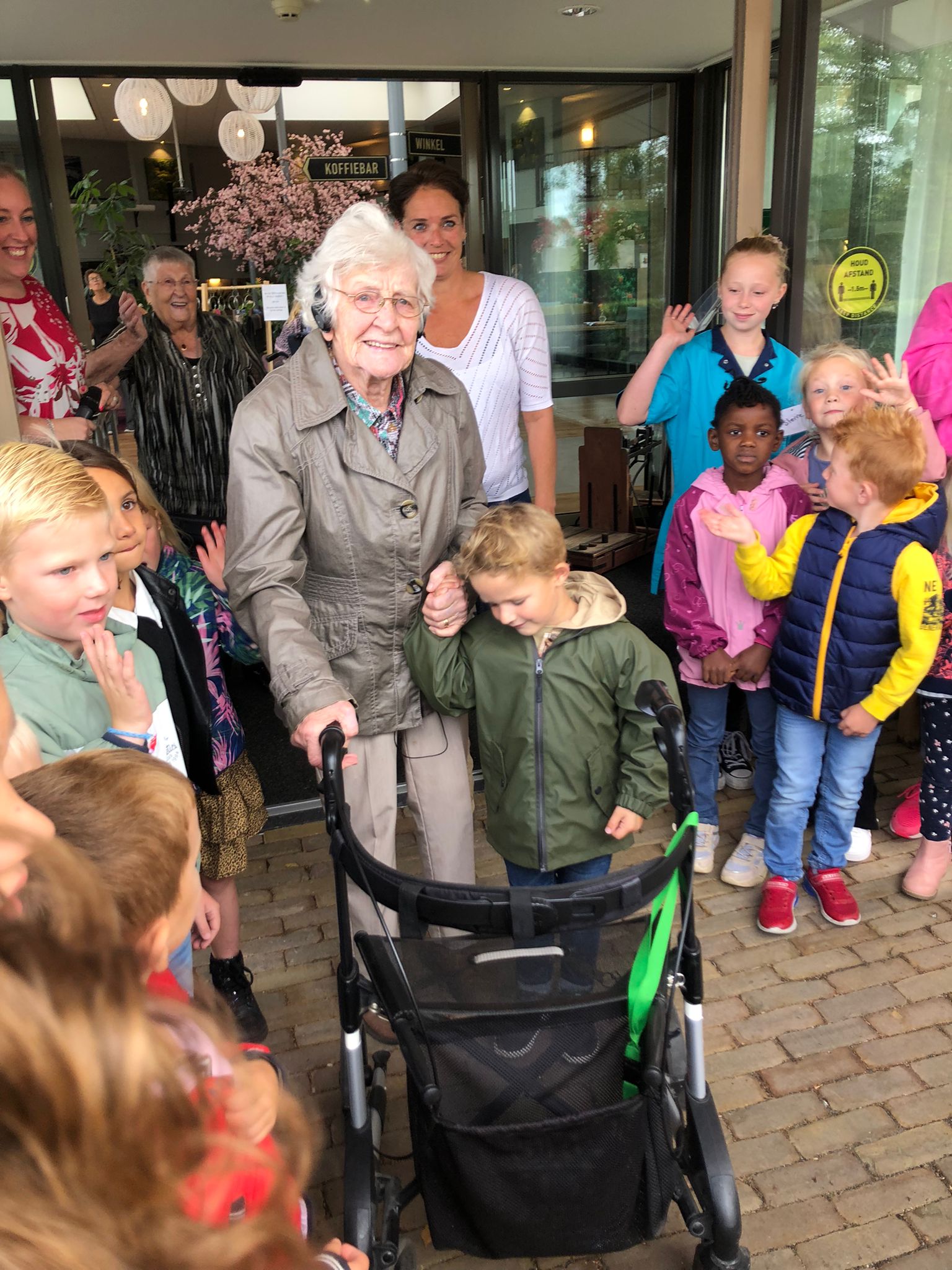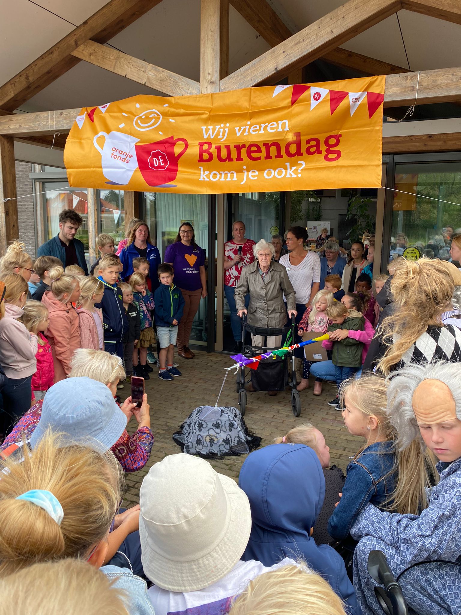 Voorafgaand aan de onthulling van de Zwaaisteen was er voor de kinderen een Vossenjacht in en om het huis. Sommige kinderen waren verkleed als oudere of als verzorgende, inclusief uniform en pruik! Het plaatje werd compleet gemaakt met hulpmiddelen als een rollator of rolstoel. Na de vossenjacht verzamelden jong en oud zich bij de ingang van het verzorgingshuis. Mevrouw Visser-de Haan, oudste bewoner van Nij Bethanië, en Sem, de jongste leerling van de basisschool, hadden de eer om na een korte toelichting van Eefke Zeilstra (Connexa) en mede namens Stichting Present, de Zwaaisteen te onthullen.